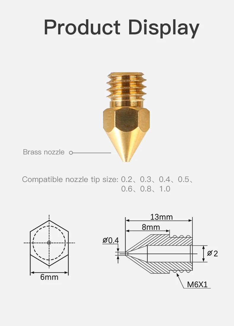 Комплект насадок Creality MK8, посылка шт, 0,20,30,40,50,60,81,0 мм