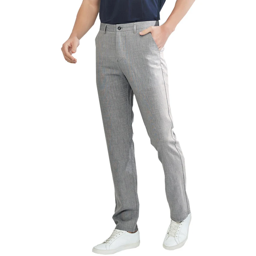 Льняные мужские брюки с защитой от катышков Lyocell, дышащие, крутые, мягкие, весна-лето, прямые, деловые, длинные, повседневные, Чино, Мужские штаны