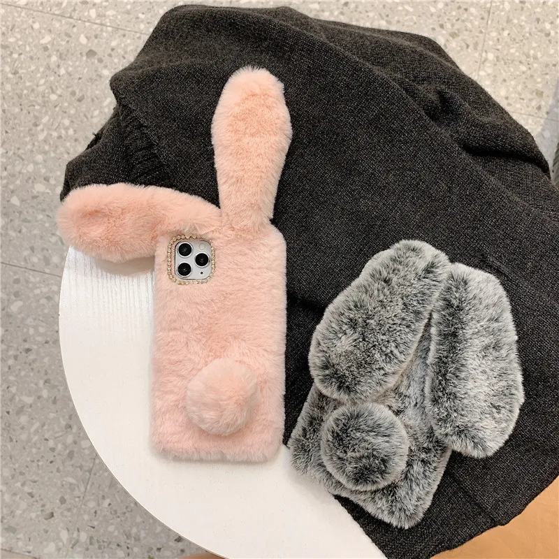 Чехол для телефона с мехом животных для IPhone 12 11 Pro X Xr Xs Max 8 7 Plus 6 6s пушистый кролик Кошка Собака Пушистый Плюшевый Кролик Мягкий теплый чехол