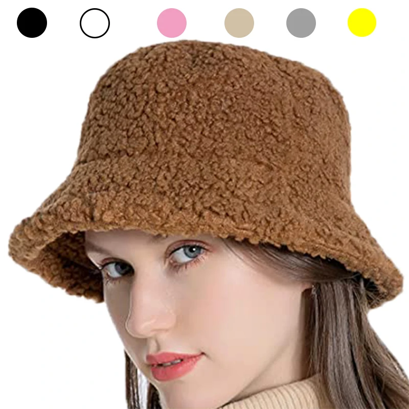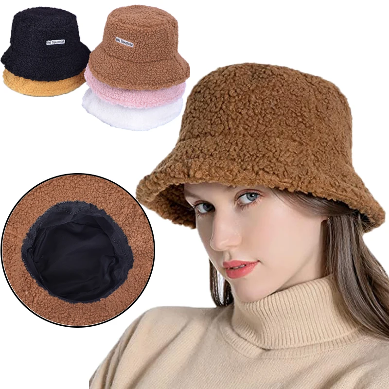 Панама из искусственного меха ягненка, зимние теплые меховые шапки ...