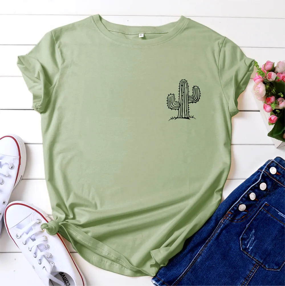 Женская футболка с коротким рукавом, круглым вырезом и принтом кактуса