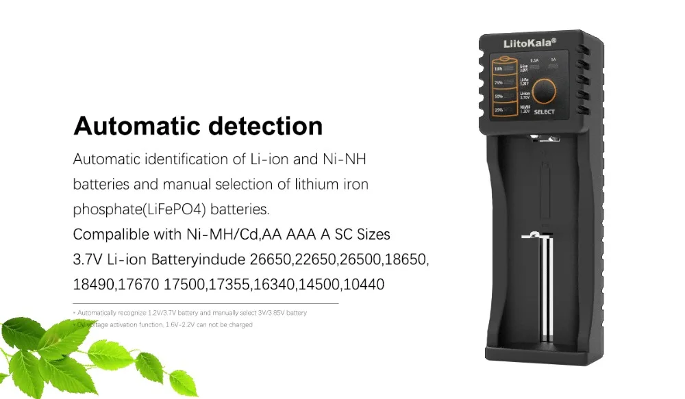 Совместимость с никель-металл-гидридный аккумулятор с компакт-дисков AA, AAA, SC размеры 3,7 V ионно-литиевая Батарея включают в себя 26650,22650,26500,18650,18490,