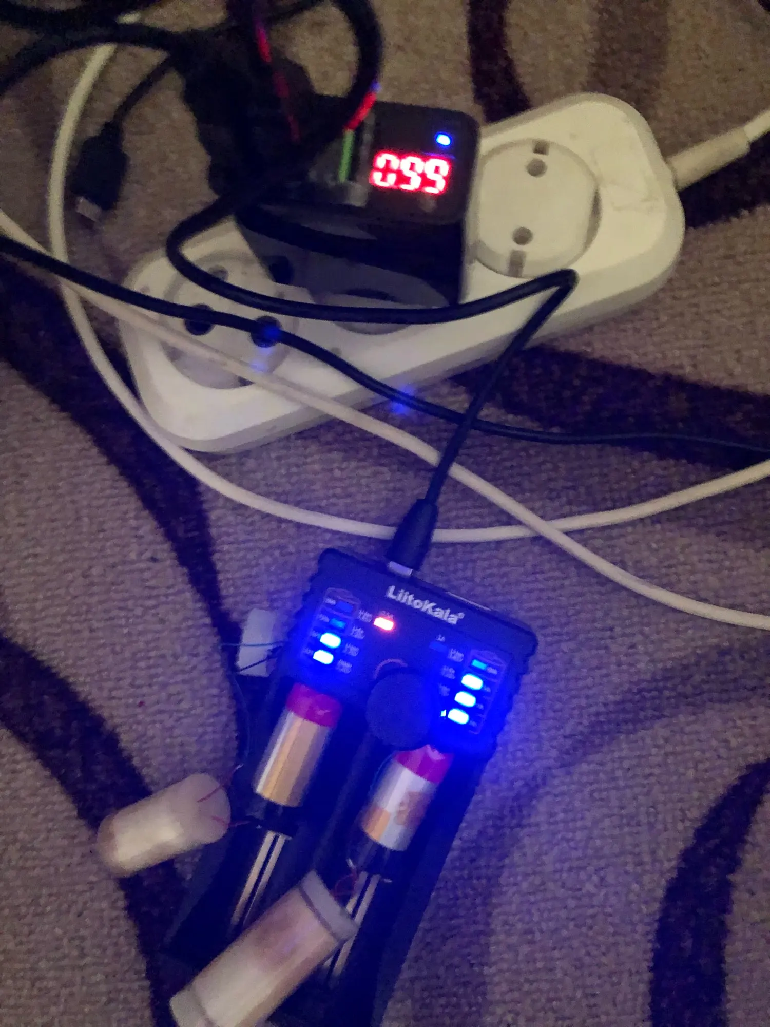Хороший зарядник. Батарейки ещё не приехали к нему, поэтому проверяла на чем смогла. К слову на зарядке аккумы от одноразовых электронок. Вроде заряжаются) Выдаёт правильно, по 0,5 ампер на каждую с погрешностью.