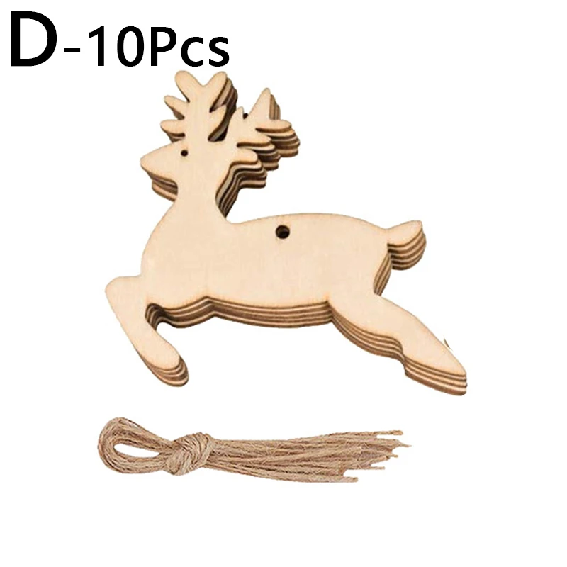 10 шт. Рождественская деревянная подвеска Рождественская елка украшения подвесное украшение деревянная ремесла Снежинка Лось для 2022 новогоднего домашнего декора