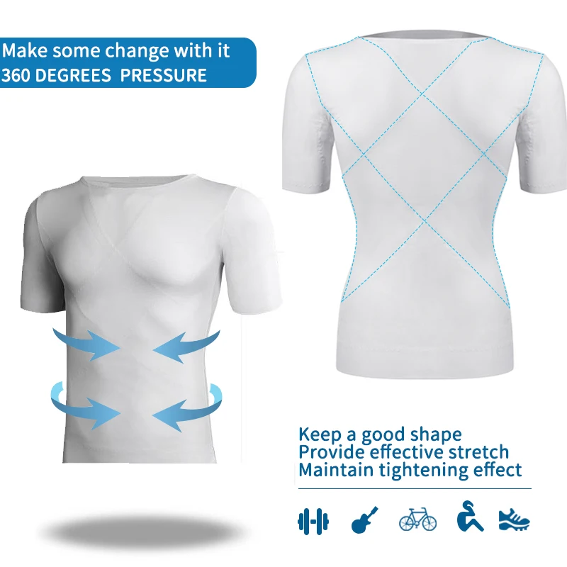 Мужская футболка для фитнеса, Корректирующее белье для похудения, К...