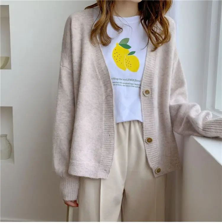 Кардиган женский, Осень-зима, вязаный, с V-образным вырезом, в Коре...