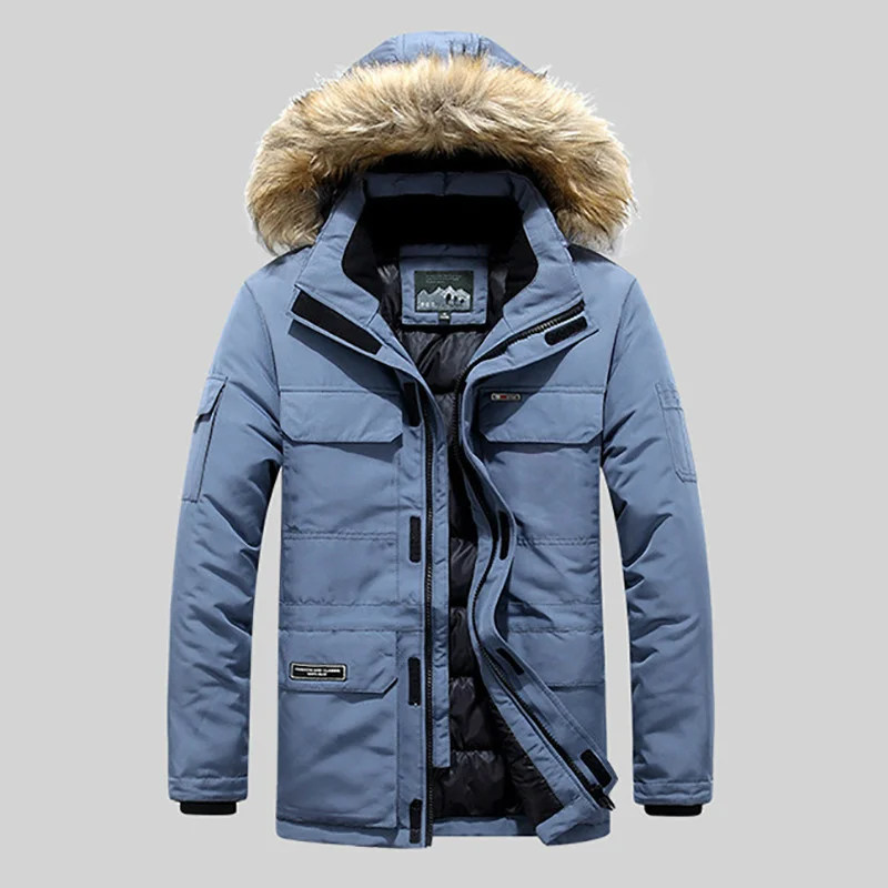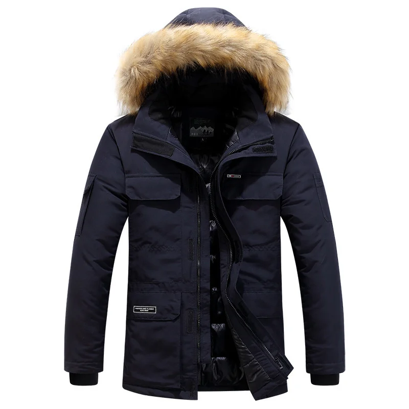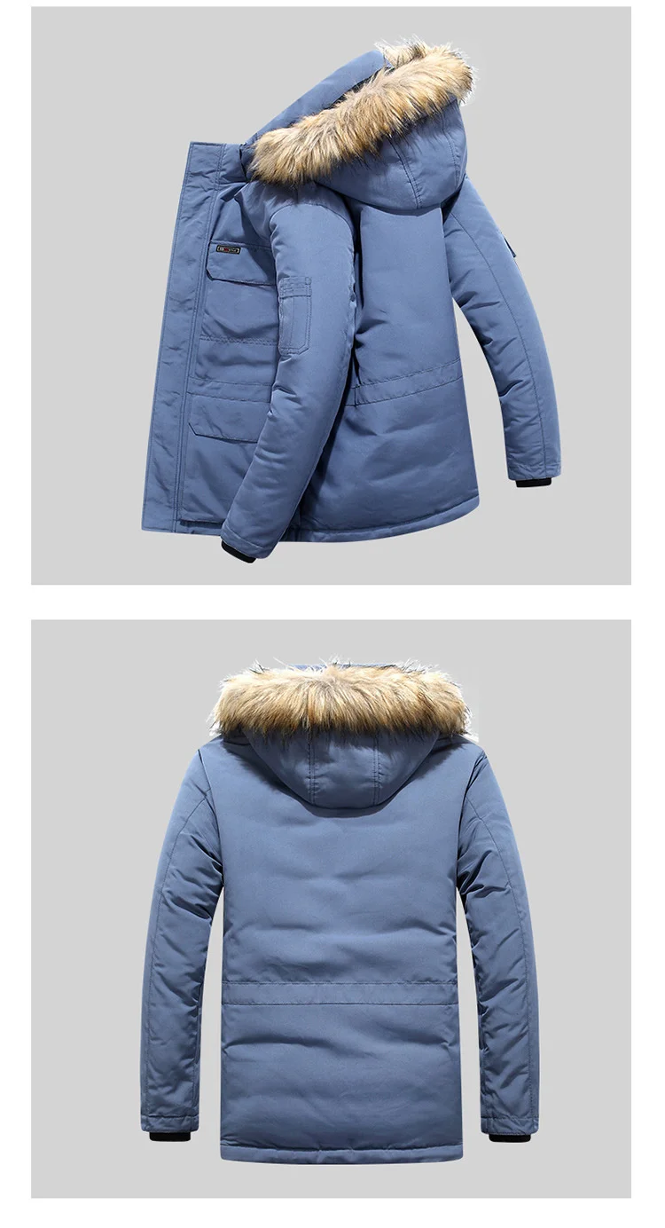 Зимняя мужская куртка размера плюс, Повседневная ветровка, Толстая Теплая мужская парка с воротником из искусственного меха, уличные мужские куртки с несколькими карманами