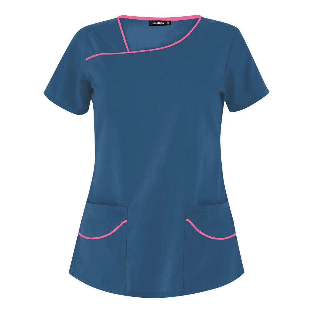 Летняя униформа медсестры, оптовая продажа, футболка с коротким рукавом и карманом для медицинских работников, топы с доктором, скрабы, Униформа, Женская лабораторная одежда