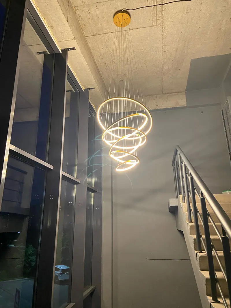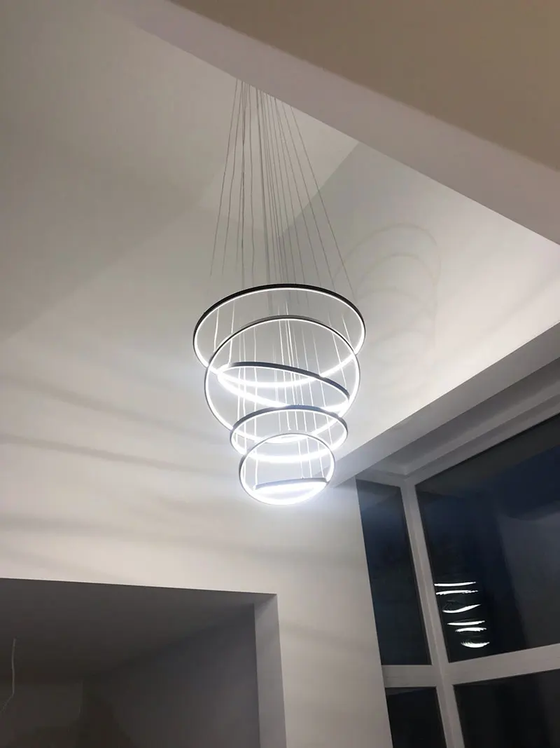 Люстра пришла быстро за неделю в Томск. Качество хорошее. Заказывали 3 кольца: 80-60-40. Есть 2 небольшие вмятины на большом кольце (почта россии). Светит отлично, комната 21 квадрат.