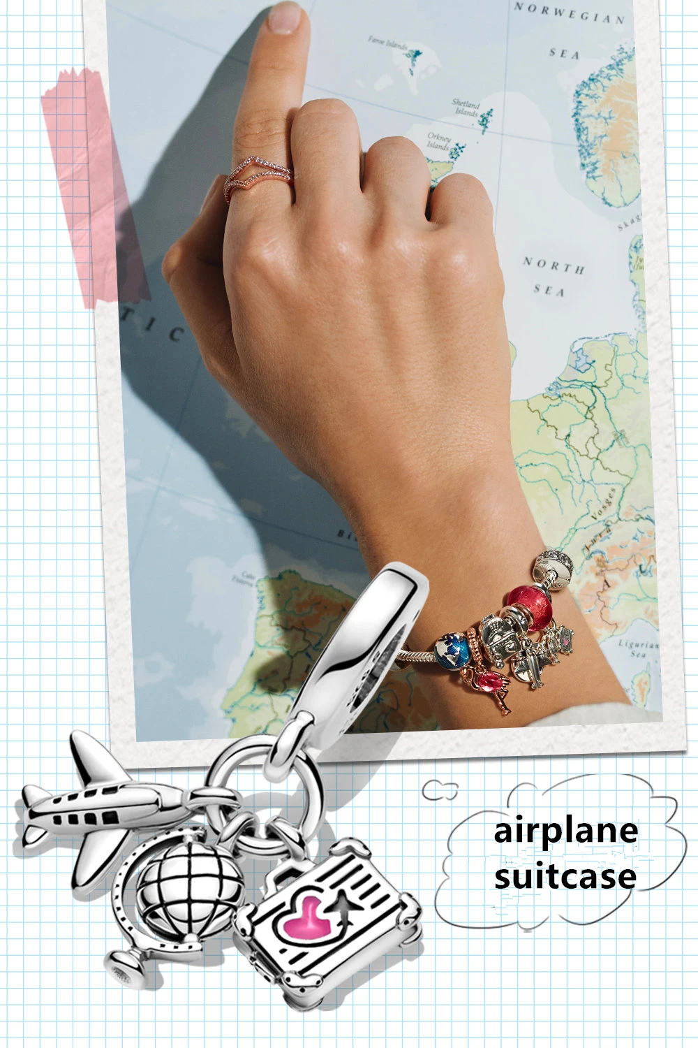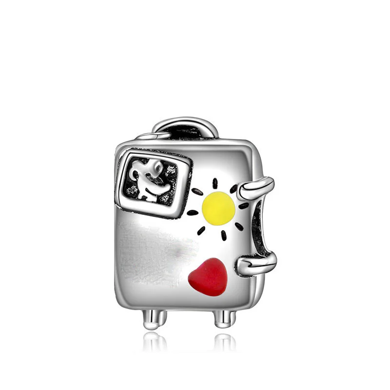 Бусина из серебра серебристый чемодан пробы для браслета Пандоры, самолета подвеска Земля