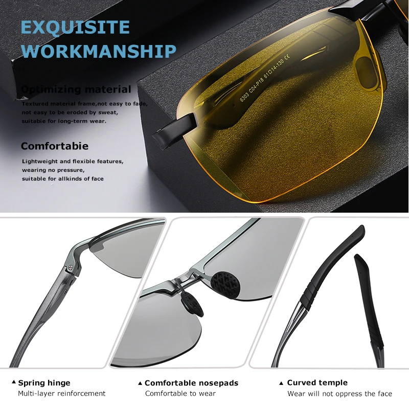 AOFLY поляризационные солнцезащитные очки, мужские Модные полуоправы, весенние шарнирные дизайнерские желтые солнцезащитные очки, мужские очки для вождения, рыбалки, UV400