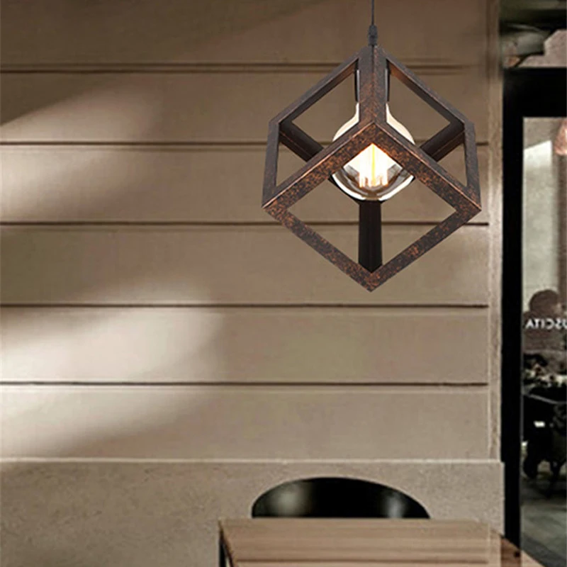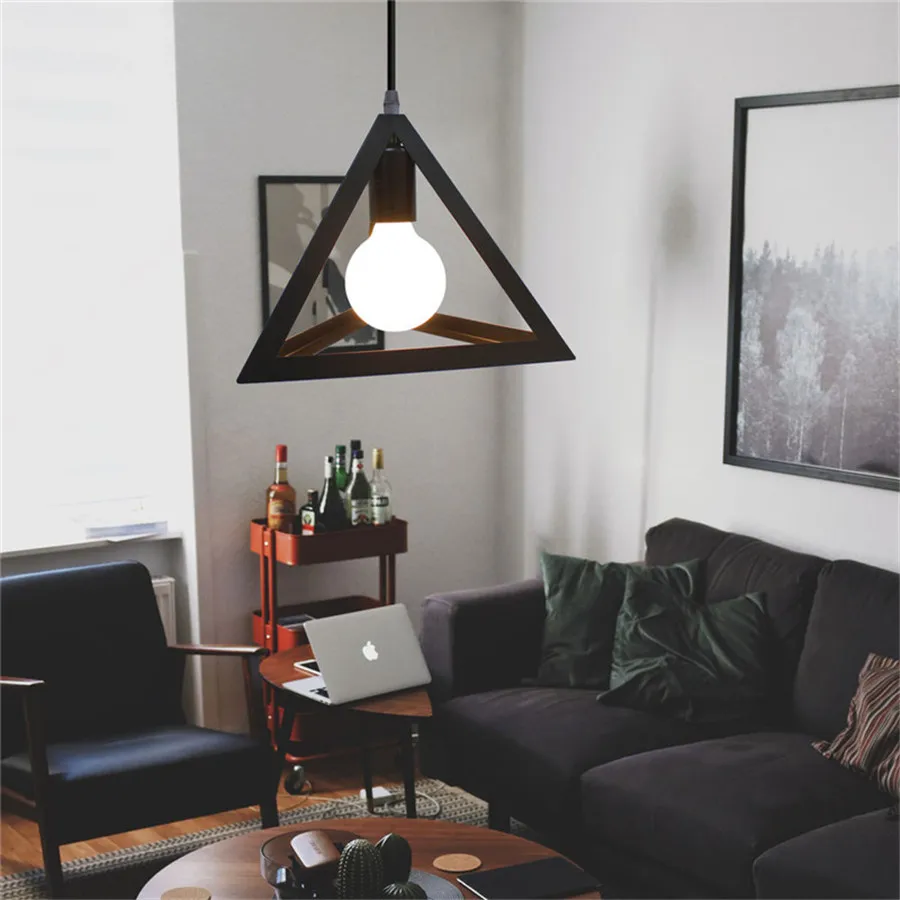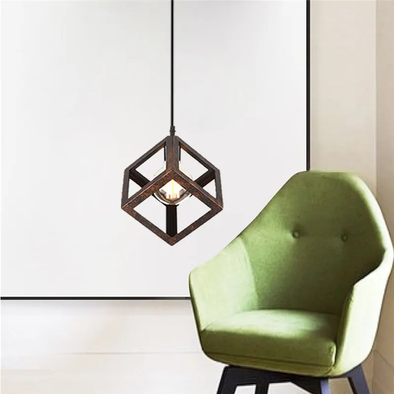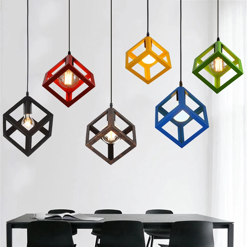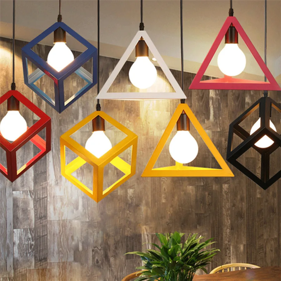 Скандинавский цветной светодиодный подвесной светильник, треугольный кубический железный подвесной Ретро светильник для ресторана, бара, кухни, островка, домашний декор