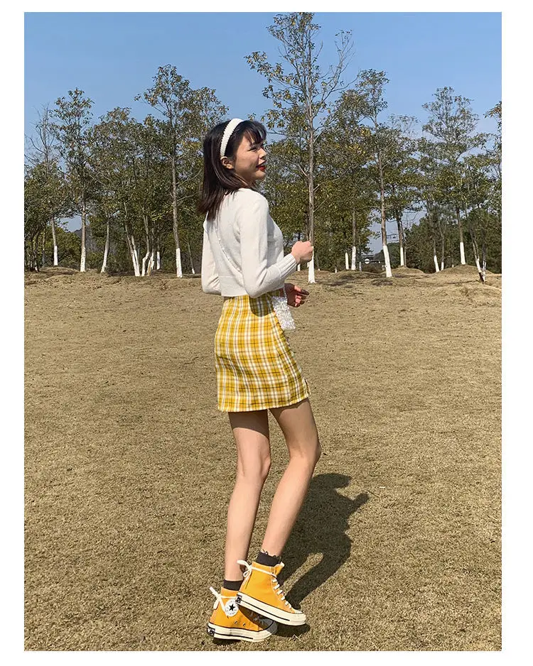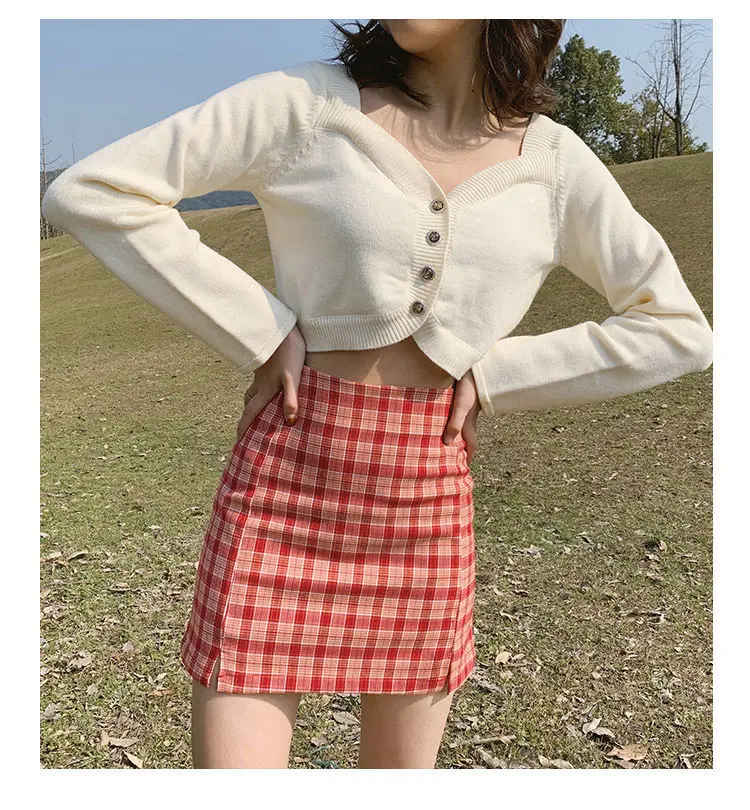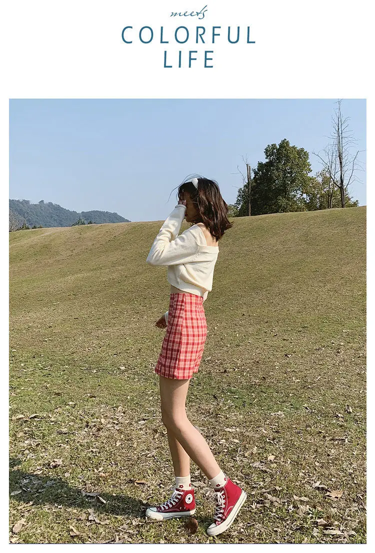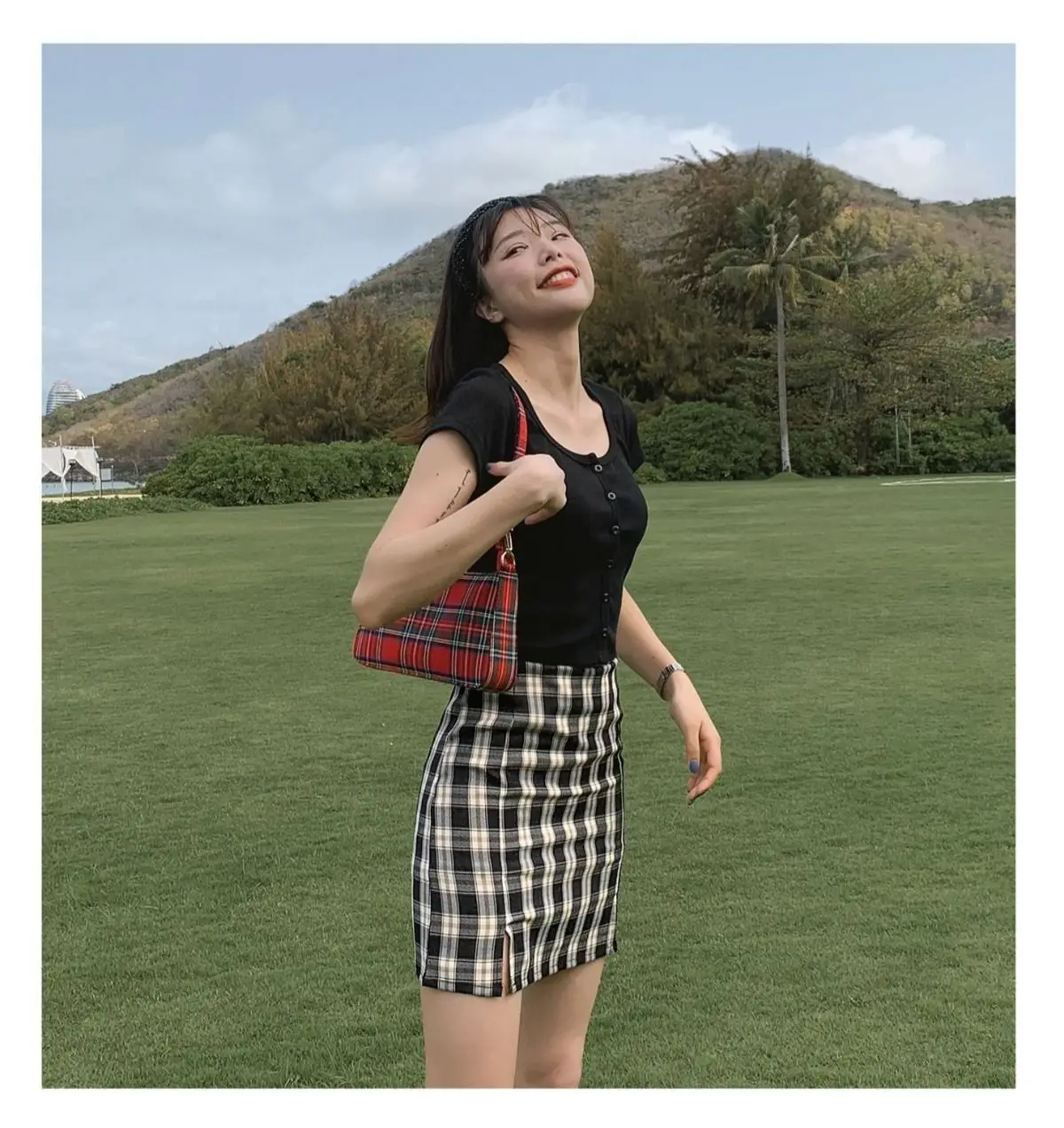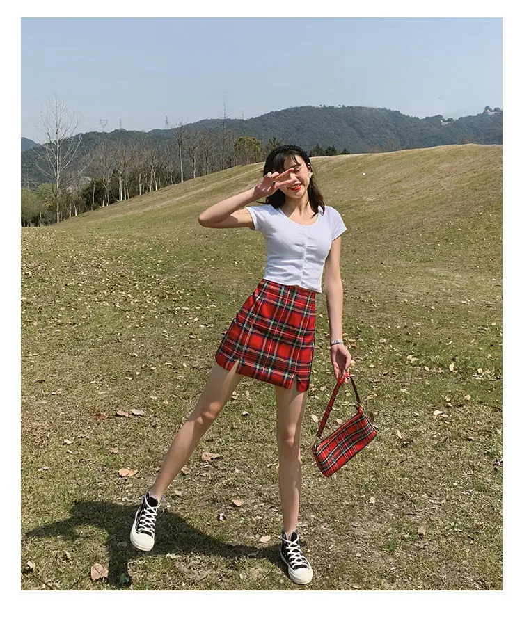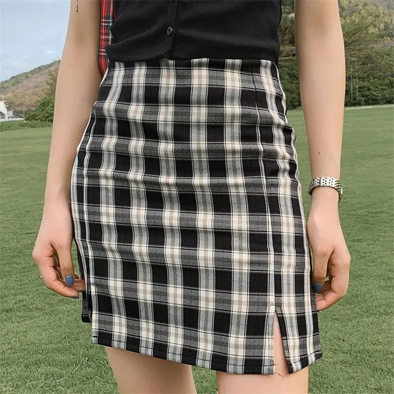 Женская короткая юбка с разрезом, повседневная клетчатая трапециевидная мини-юбка с высокой талией, в стиле Харадзюку, осень 2021