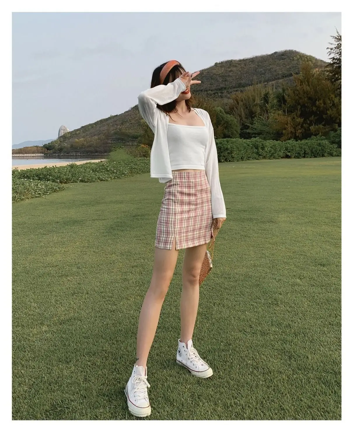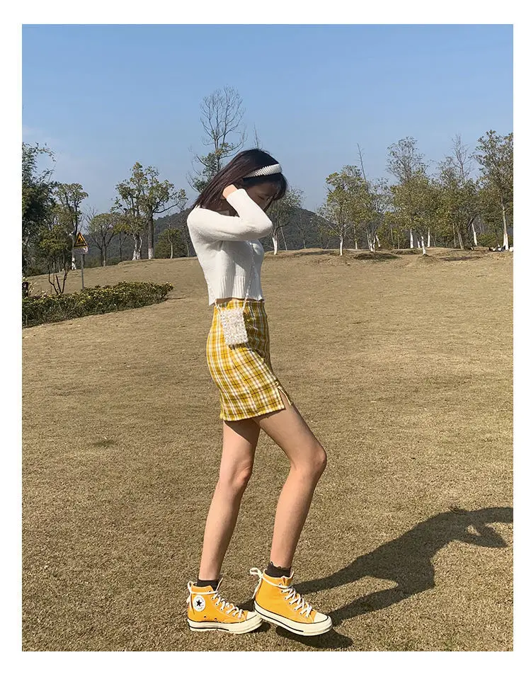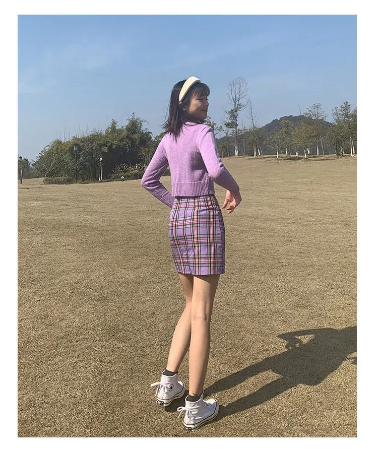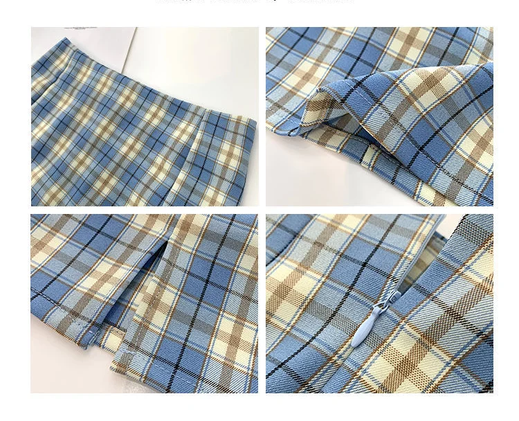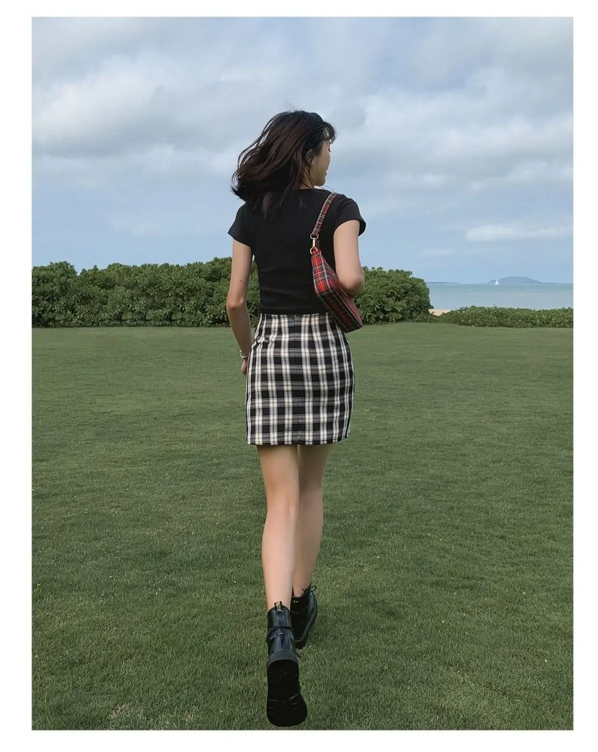 Женская короткая юбка с разрезом, повседневная клетчатая трапециевидная мини-юбка с высокой талией, в стиле Харадзюку, осень 2021
