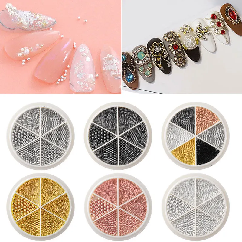 Маленькие маленькие бусины из нержавеющей стали, шпильки, Золотая Серебряная Икра, 3D микро-шар, Шарм для ногтей, аксессуары для маникюра