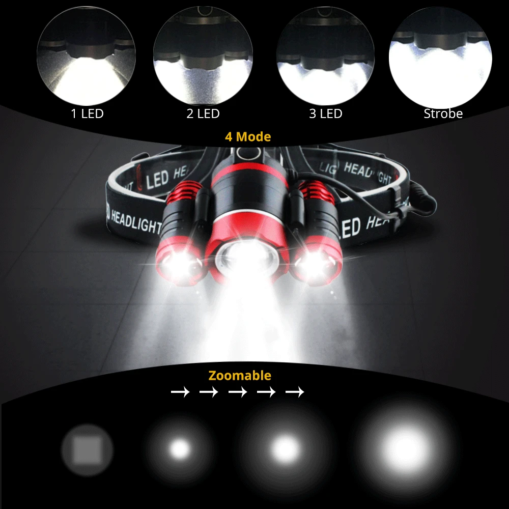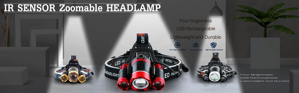 Налобный фонарь T6 для рыбалки, кемпинга, альпинизма