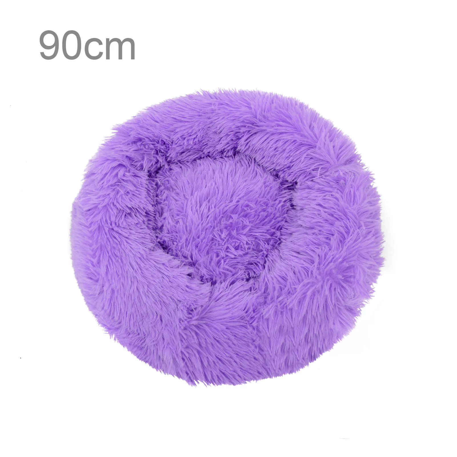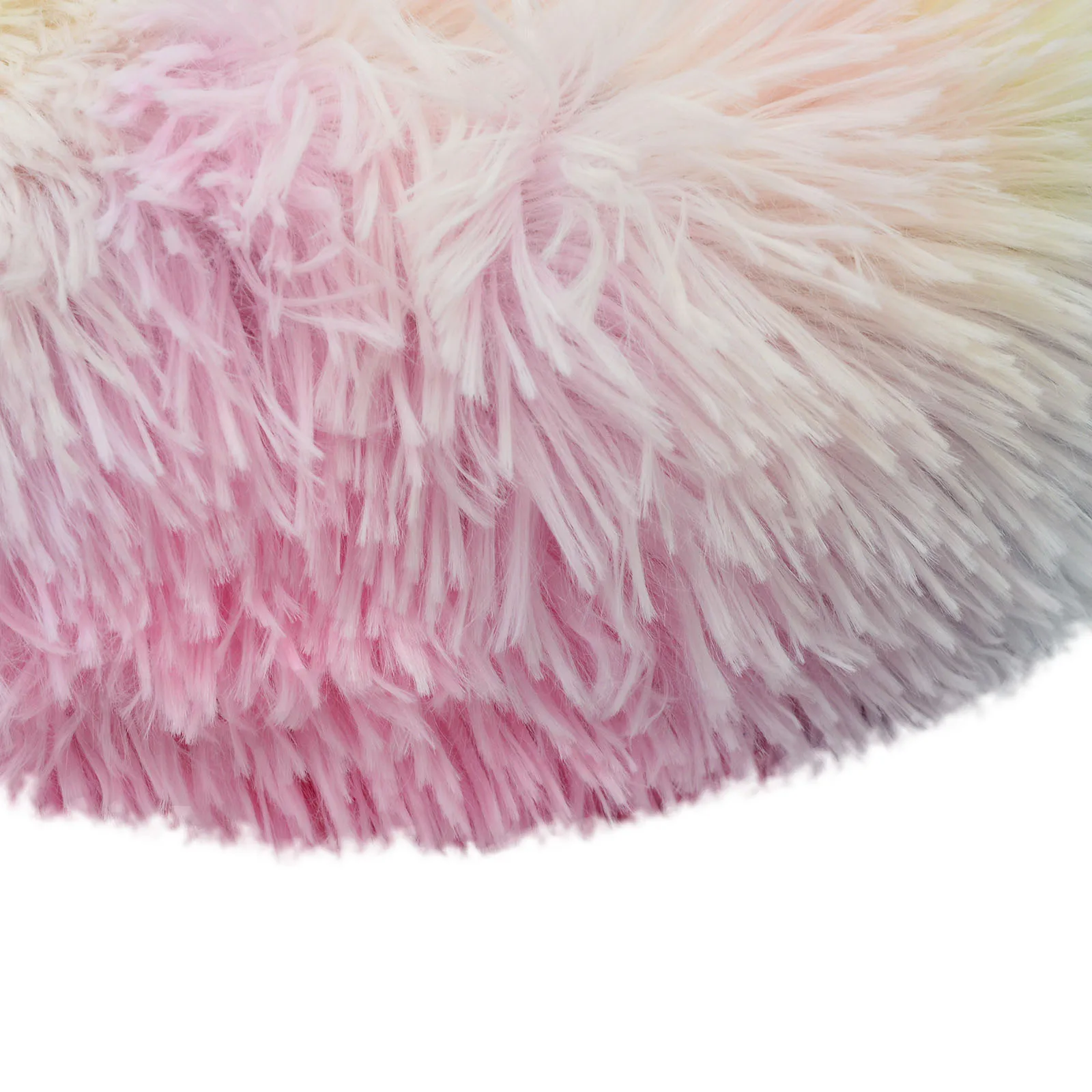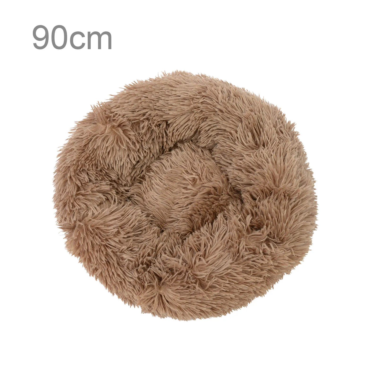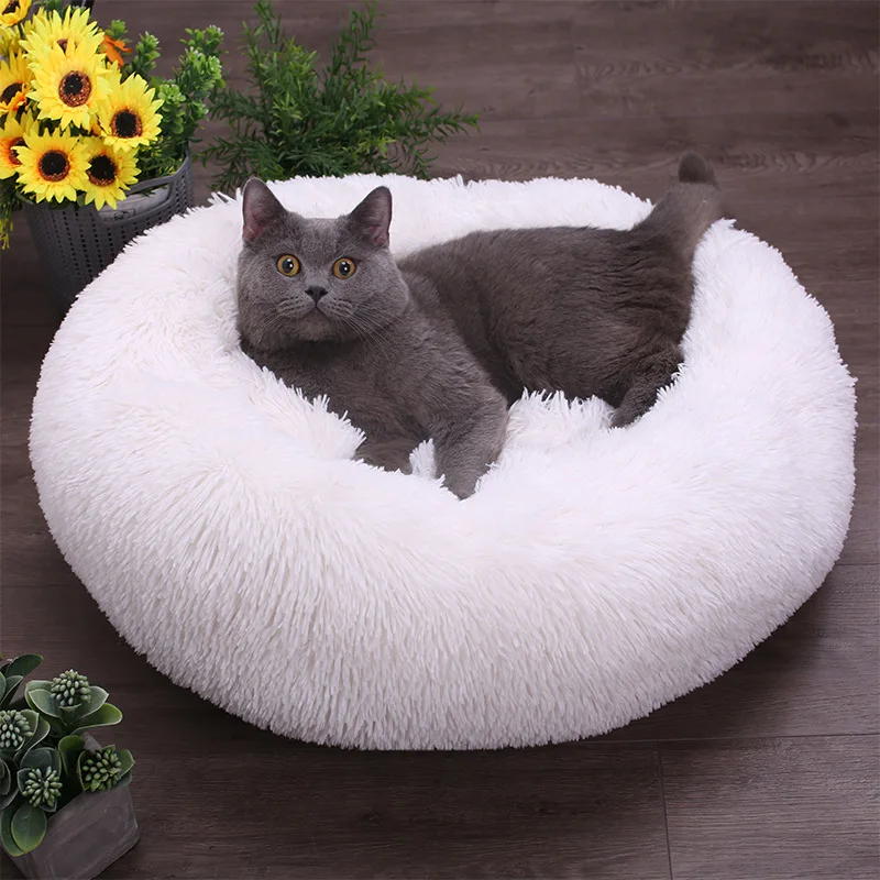 Круглая кровать для кошек, домашних питомцев, мягкий длинный плюшевый коврик