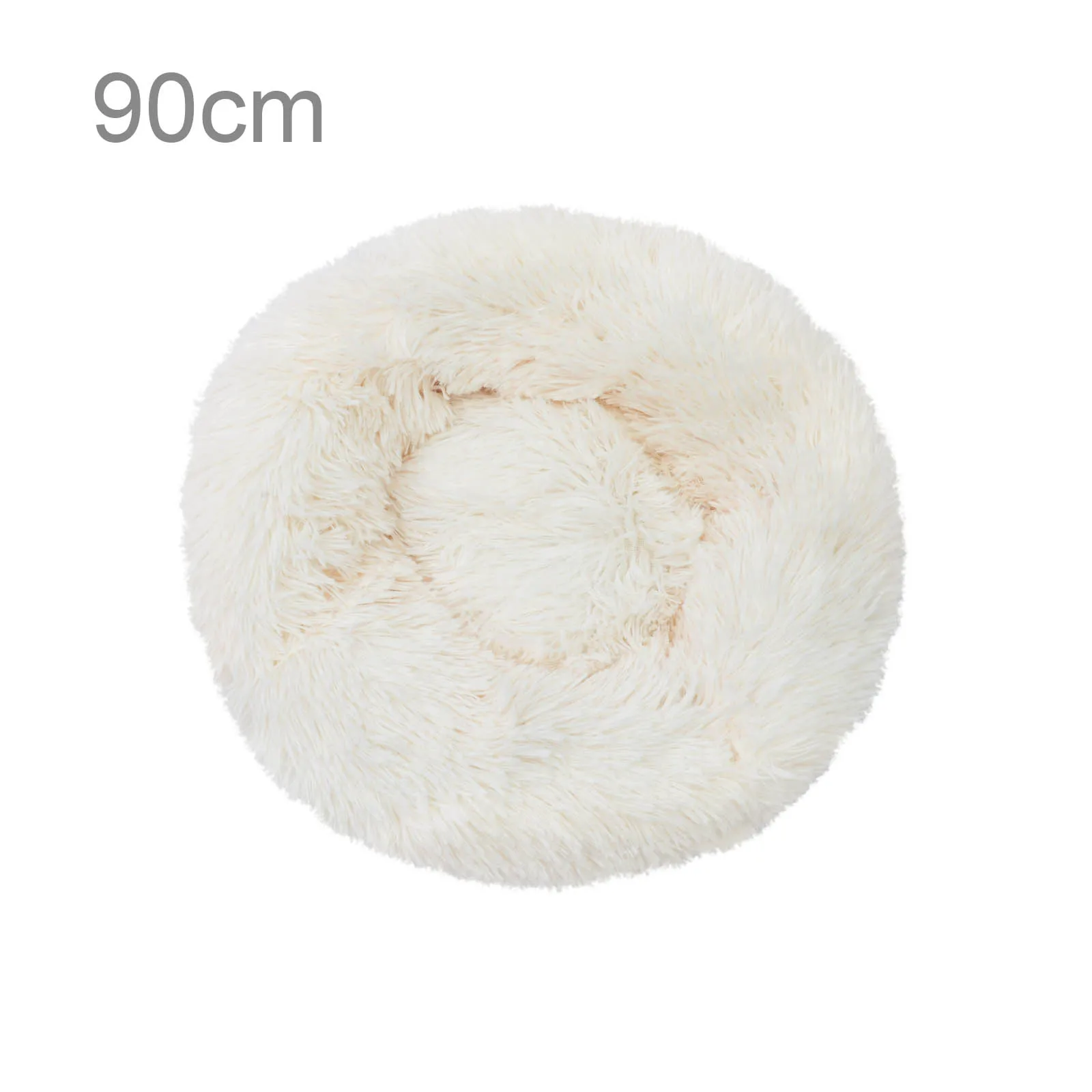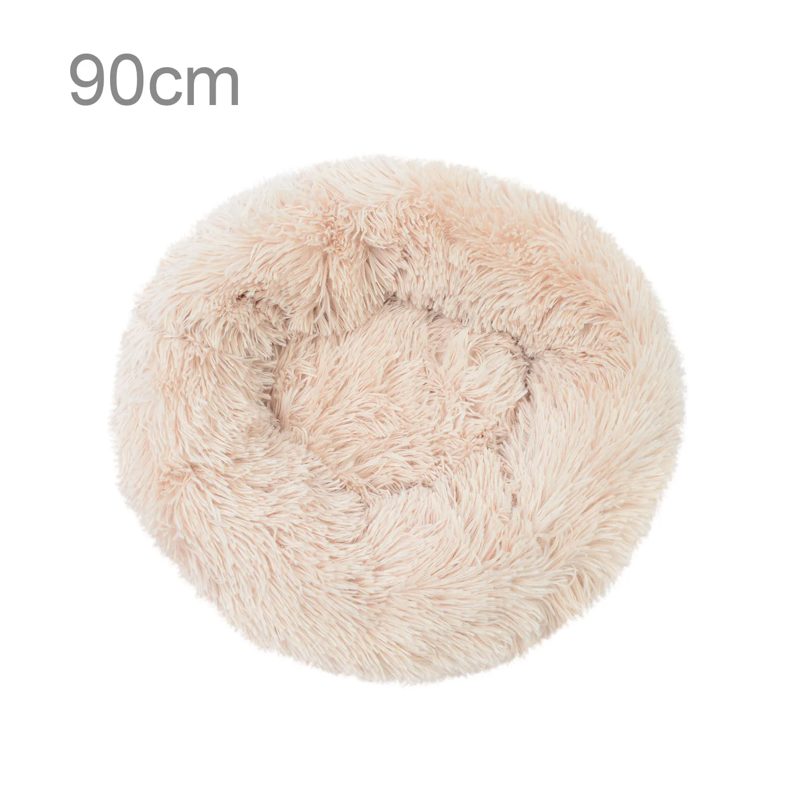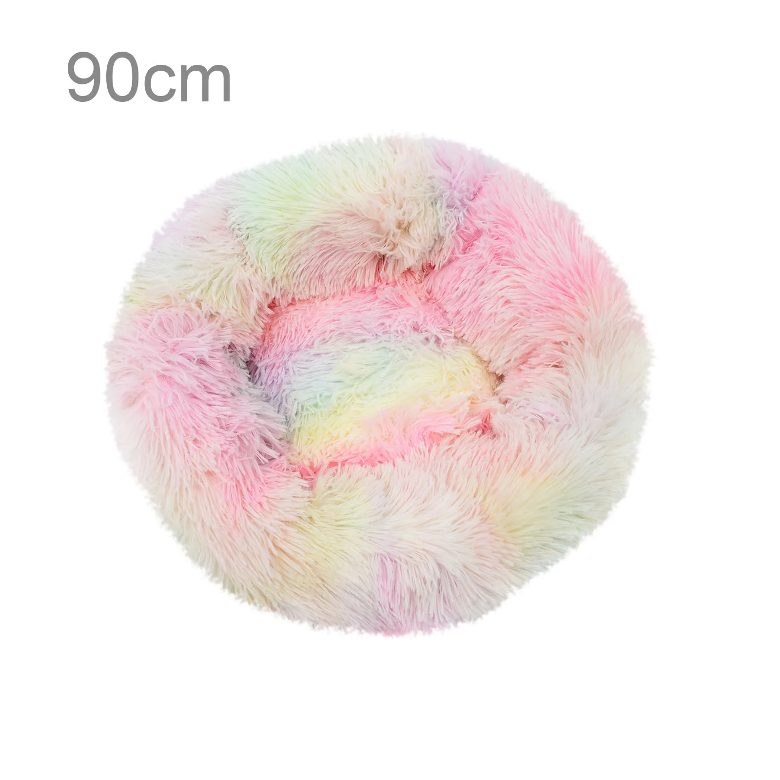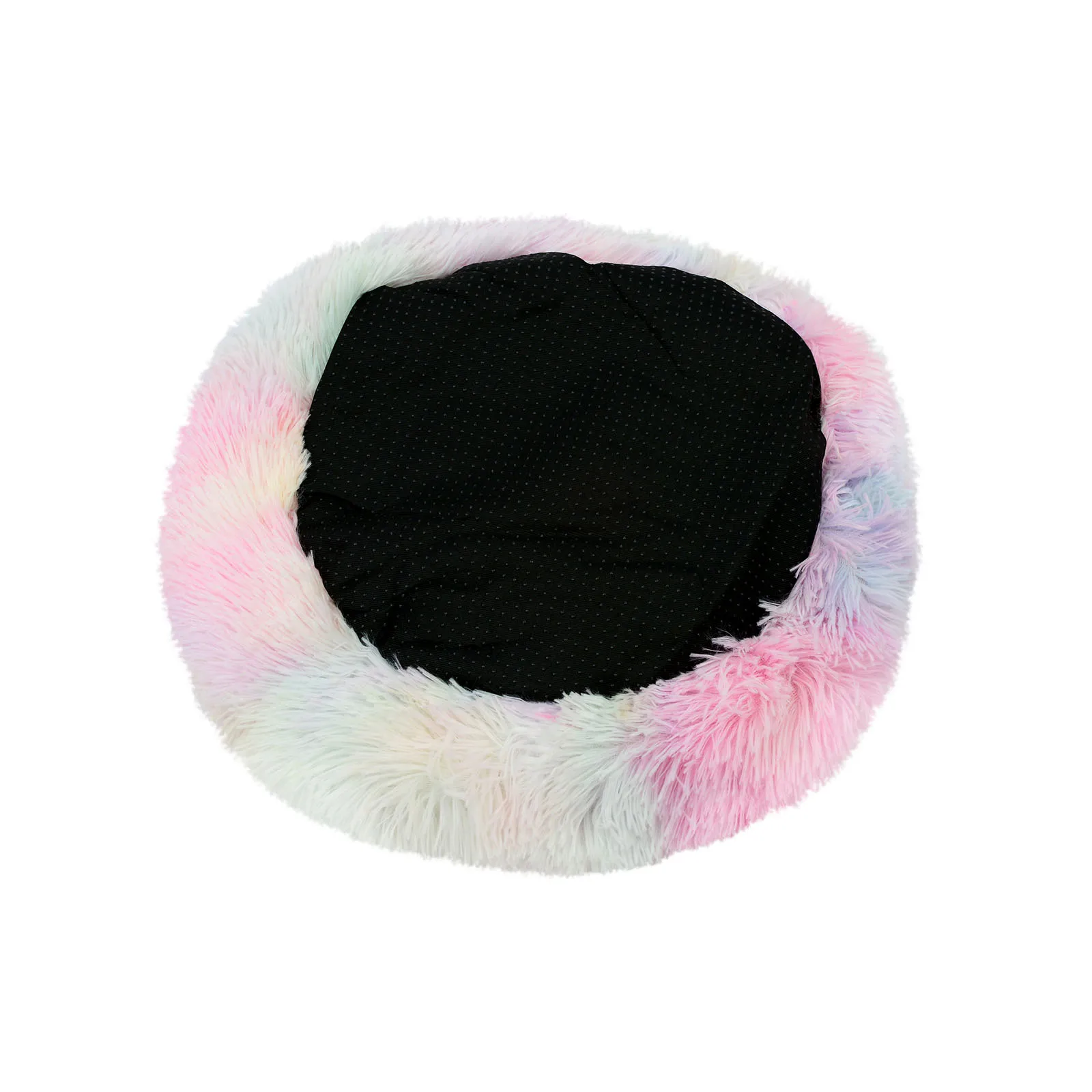 Круглая кровать для кошек, домашних питомцев, мягкий длинный плюшевый коврик