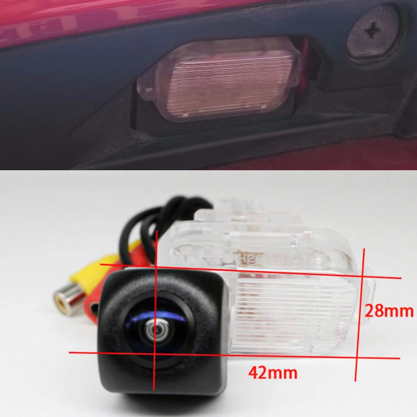 Перед заказом, пожалуйста, убедитесь, что фото размера камеры одинаковое, расположение лампы номерного знака и желтый разъем RCA, чтобы проверить размер камеры вместе, чтобы избежать ошибок. (Если вы не уверены, пожалуйста, оставьте сообщение для сотрудников службы поддержки клиентов: Отправьте модель автомобиля и год + информацию о фото позиции лампы номерного знака)