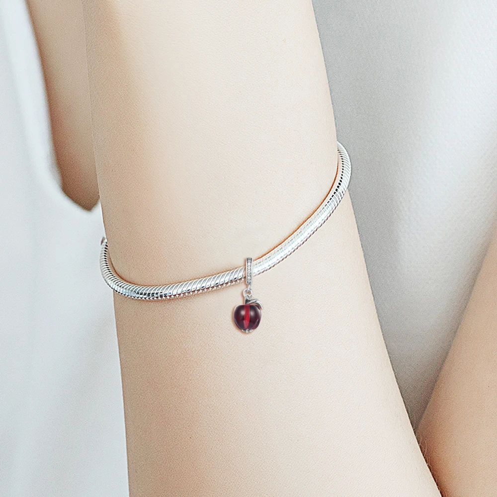 Бусины из серебра 925 пробы с красным яблоком для браслета