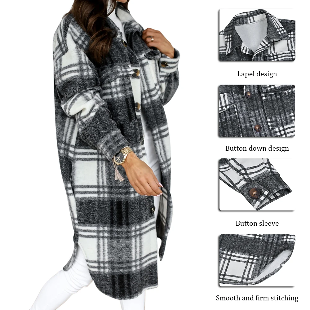 Осенне-зимняя женская куртка в клетку, пуховое пальто, теплое клетчатое длинное пальто большого размера, толстое шерстяное пальто в стиле ретро, Женская Повседневная Уличная одежда