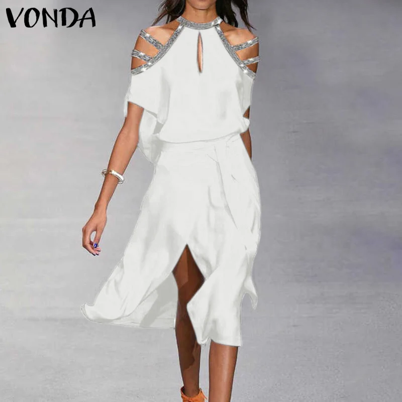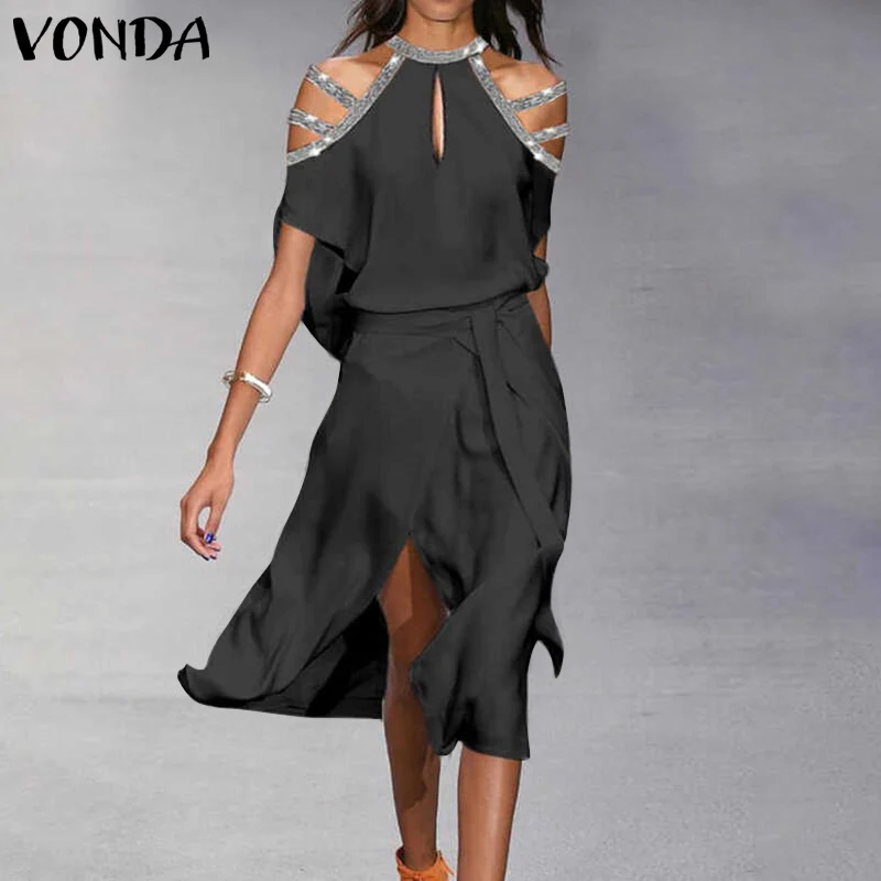 VONDA летнее вечернее платье 2022, женские сексуальные однотонные п...