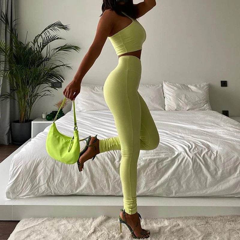 Женский спортивный костюм для йоги, повседневный однотонный облегающий Топ без рукавов и леггинсы, комплект из 2 предметов, 2021