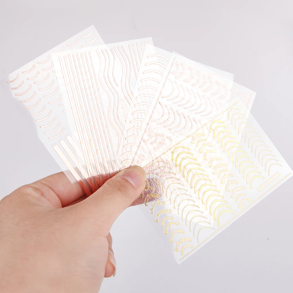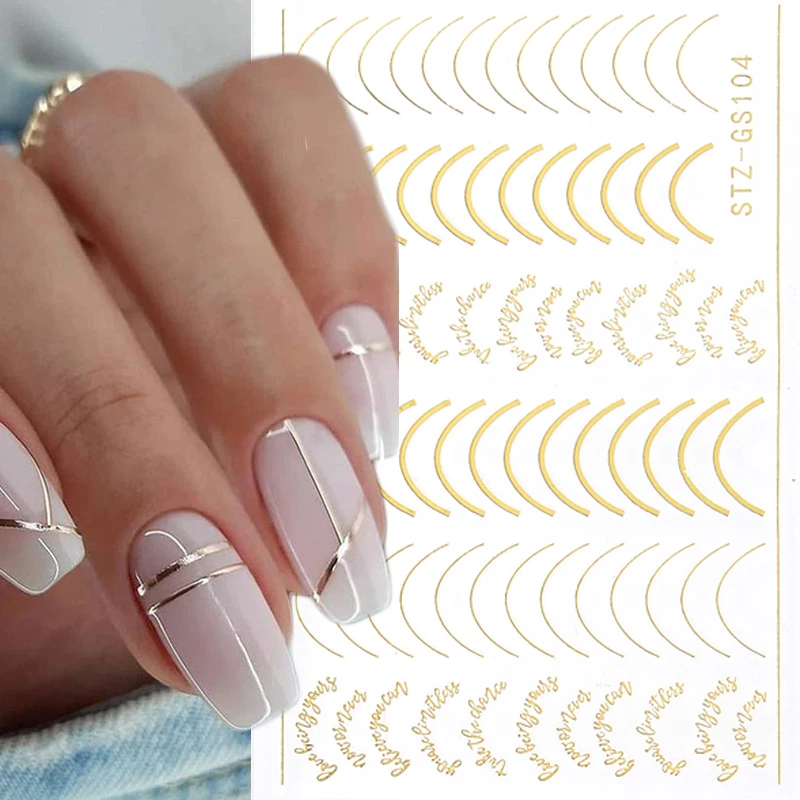 3D-Наклейки для ногтей из розового золота, наклейки для ногтей, металлические полоски, буквы, наклейки, изогнутые Слайдеры для дизайна ногтей, клейкие украшения для маникюра, новинка