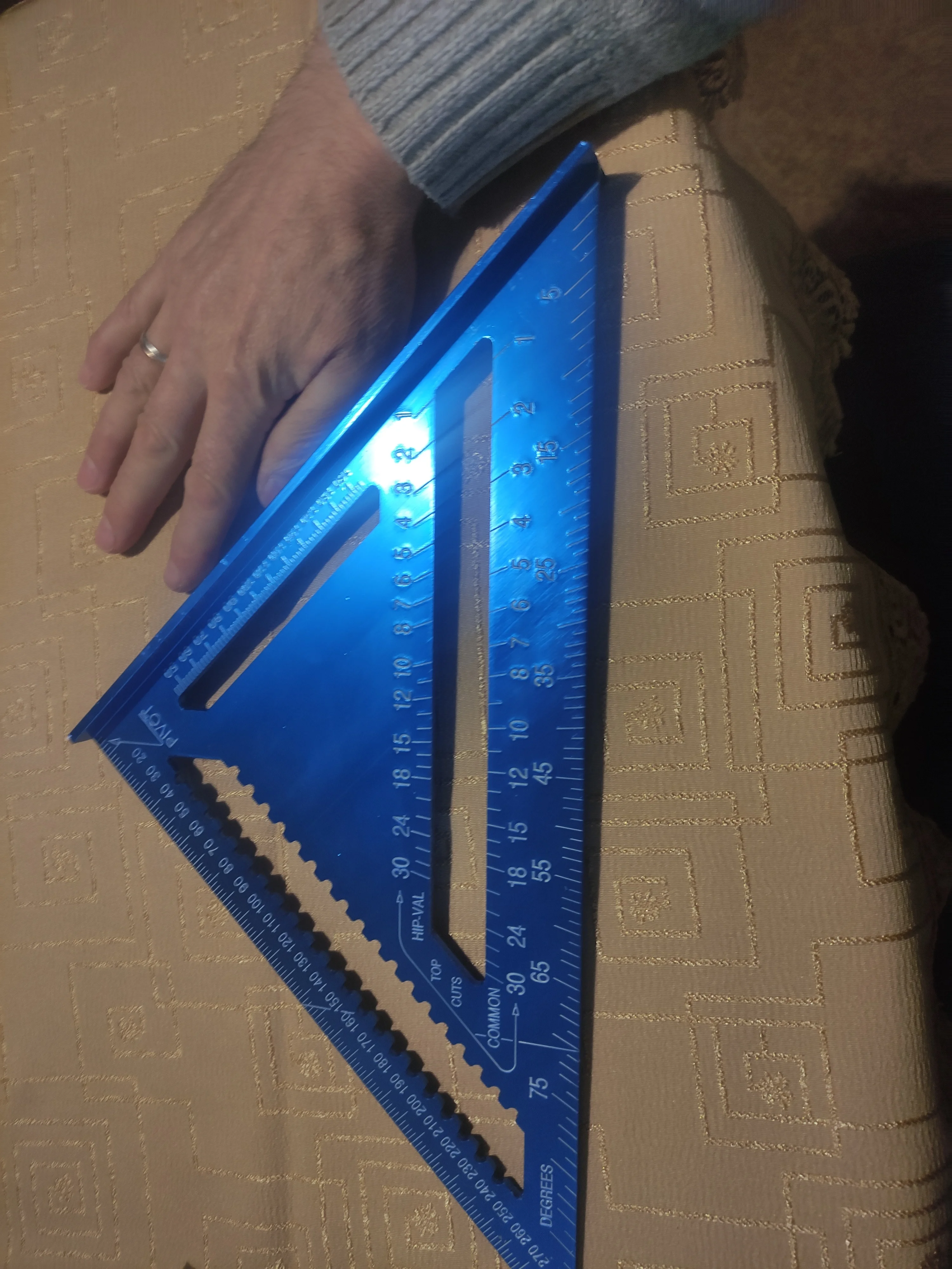 линейка хорошая. толщина алюминия 4 мм. качество циферок и буковок так себе, видно на фото, но читаемо. присутствуют мелкие мятинки и царапки. Ну да ладно для работы надо. всё равно поцарапается со временем. Упаковка желает быть лучшей. Надо картон на углы положить что защитить их. Угольник просто завернули в пупырку и пакет целофановый. Слабовато. Кому-то не повезёт с доставкой, погнуть может почта. У меня вот такое получилось. Напильником поправлю. не 5 а 4 звёзды за упаковку.