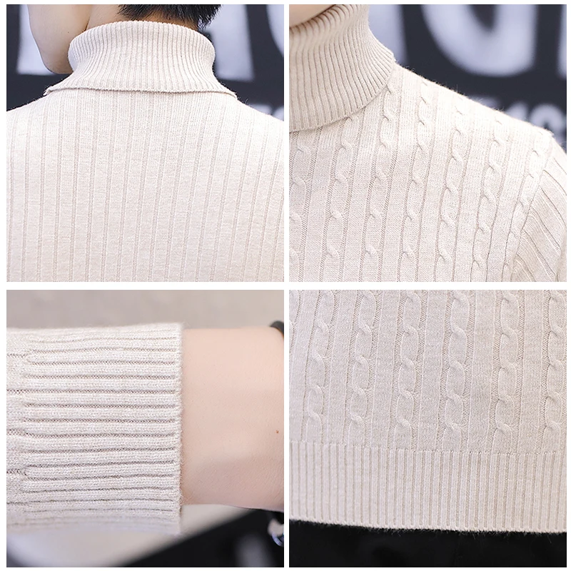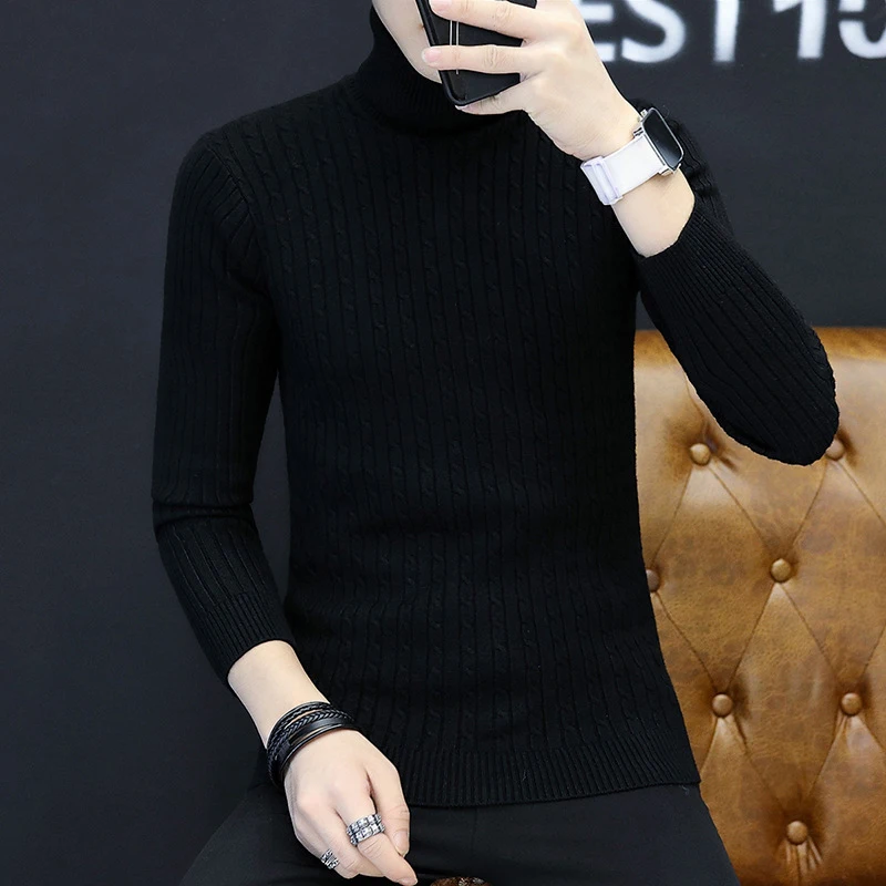 Мужской вязаный свитер с высоким воротником, однотонный Повседневный приталенный вязаный пуловер с косами, Осень-зима 2021
