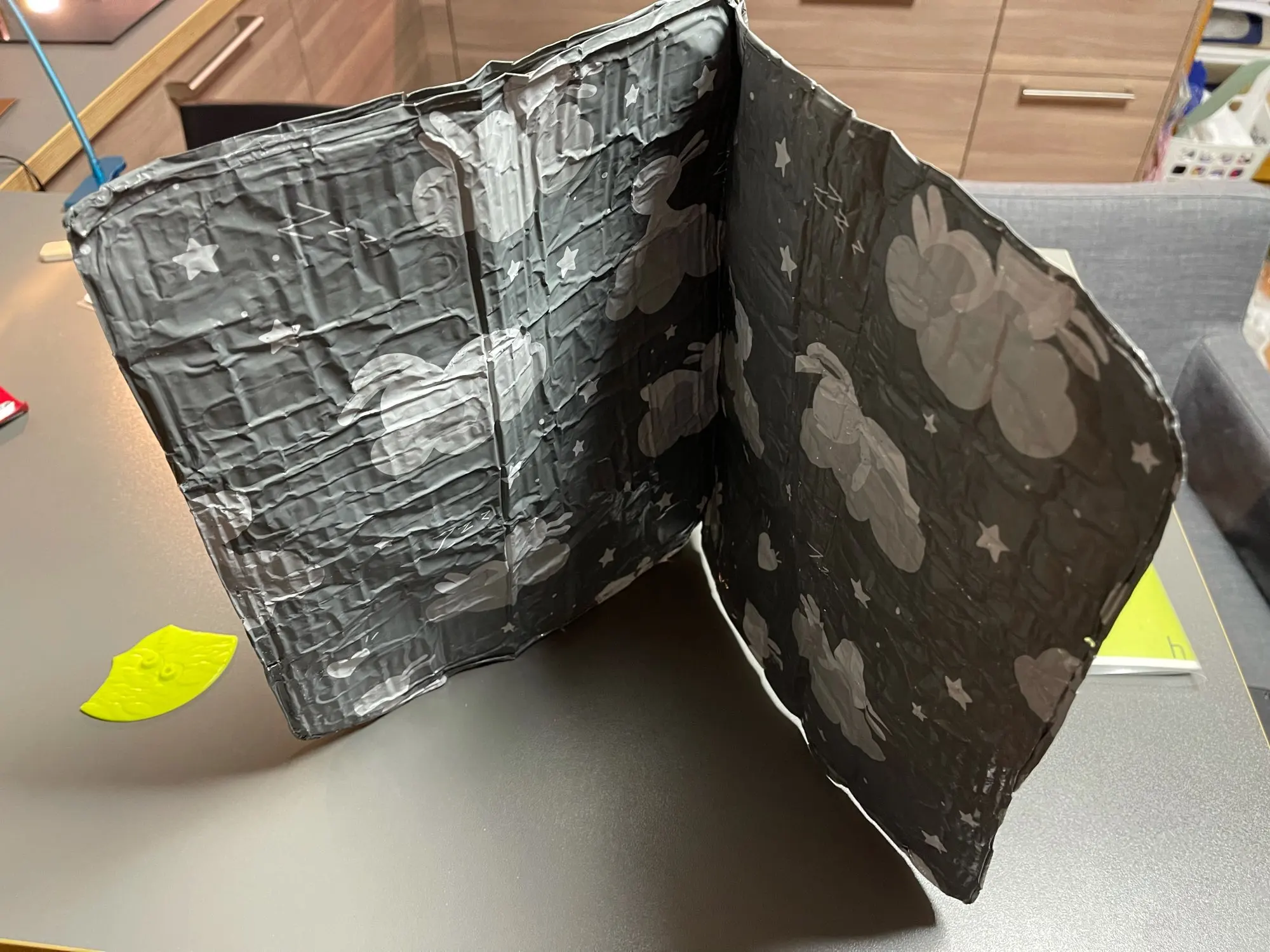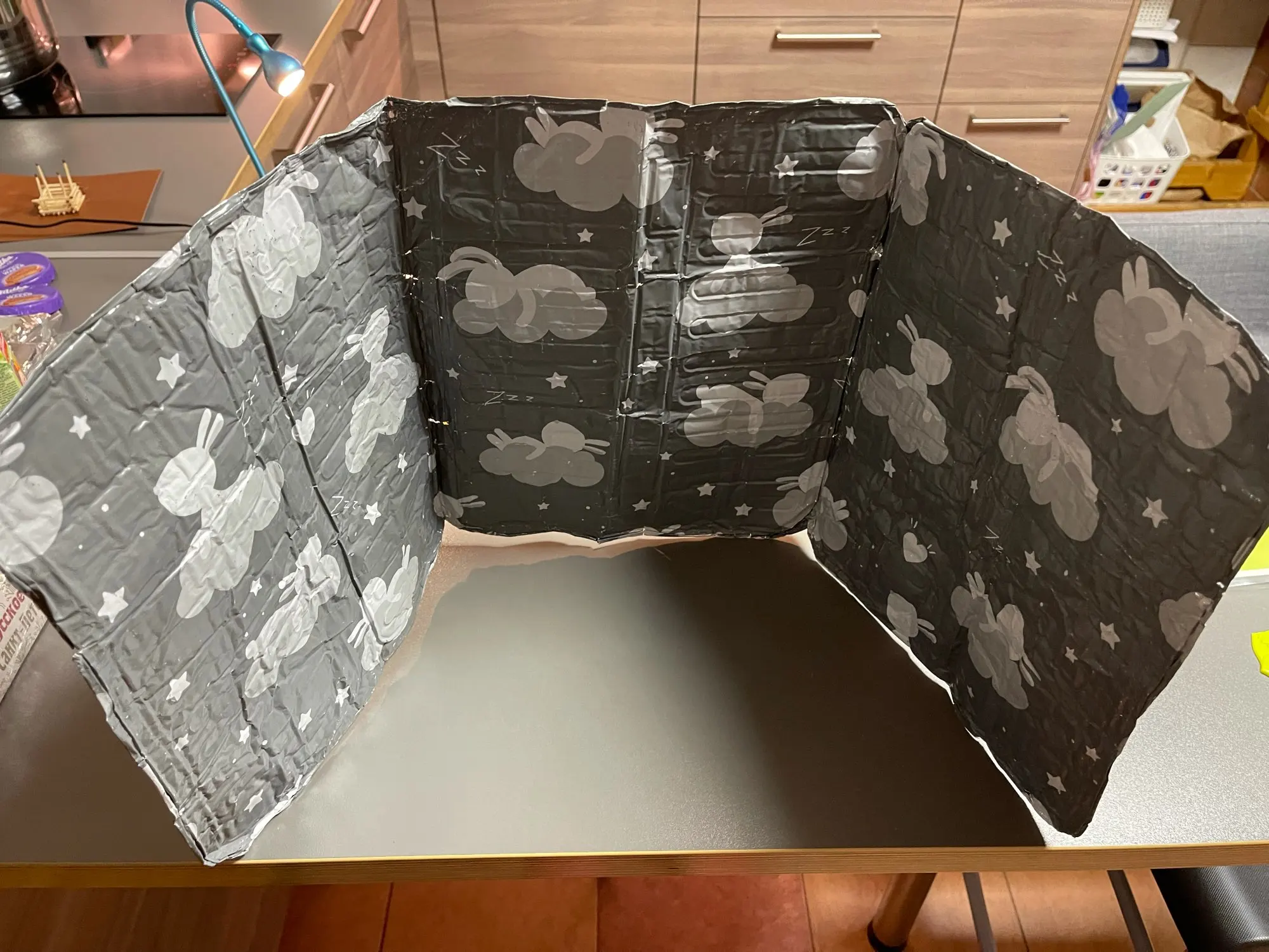 Был упакован просто в пакете, поэтому Экран пришёл весь помятый и есть разорванные места. Пока порадовала только веселая расцветка. Сам экран очень тонкий. Ещё не поняла довольна я покупкой или или просто потратила деньги