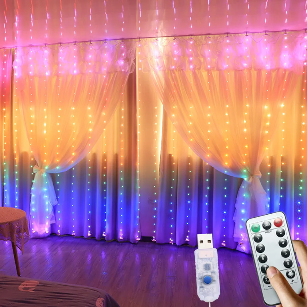 Рождественский светильник для занавесок, гирлянда, светодиодный светильник, Рождественское украшение, дистанционное управление, USB, свадьба, лампа для спальни, праздник