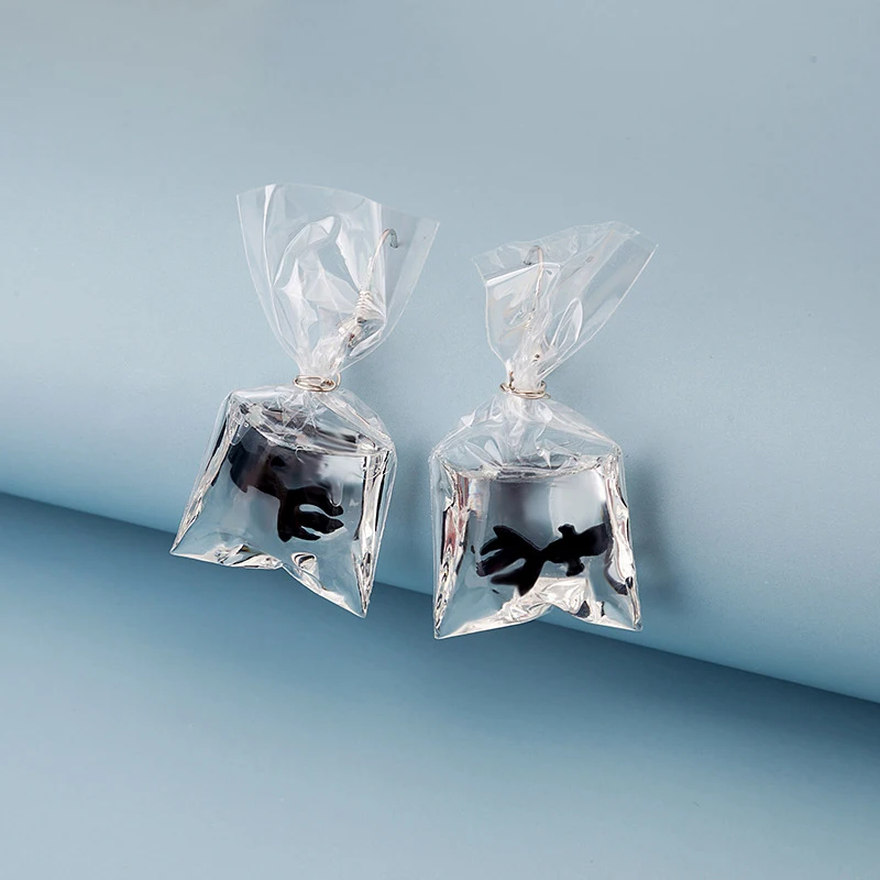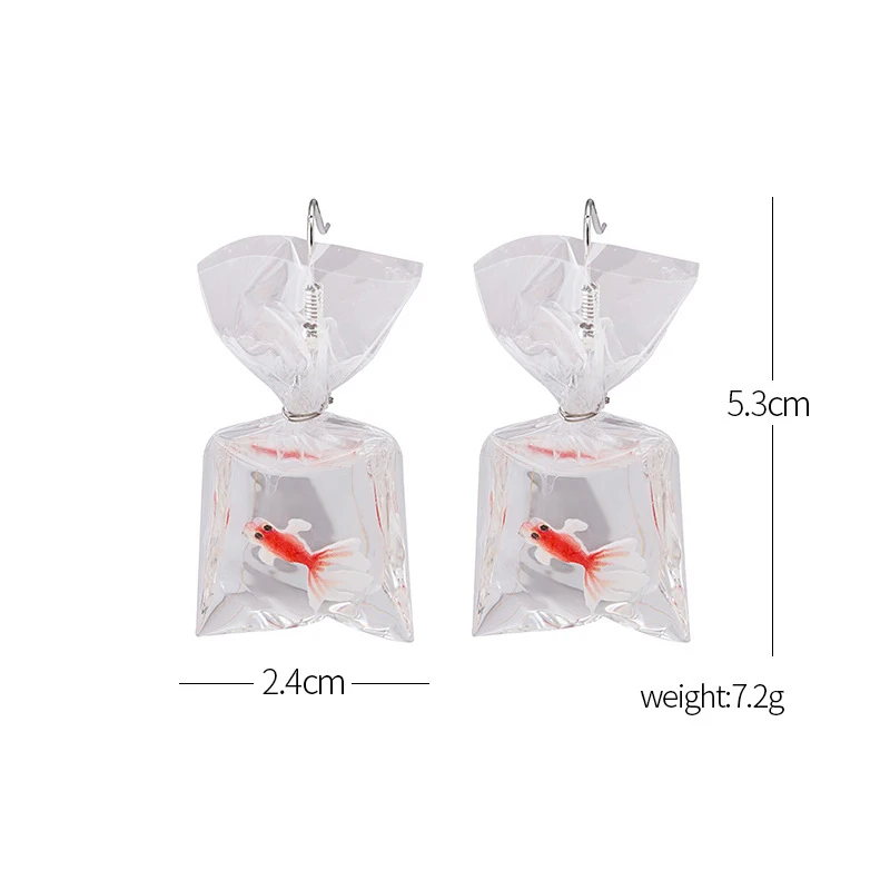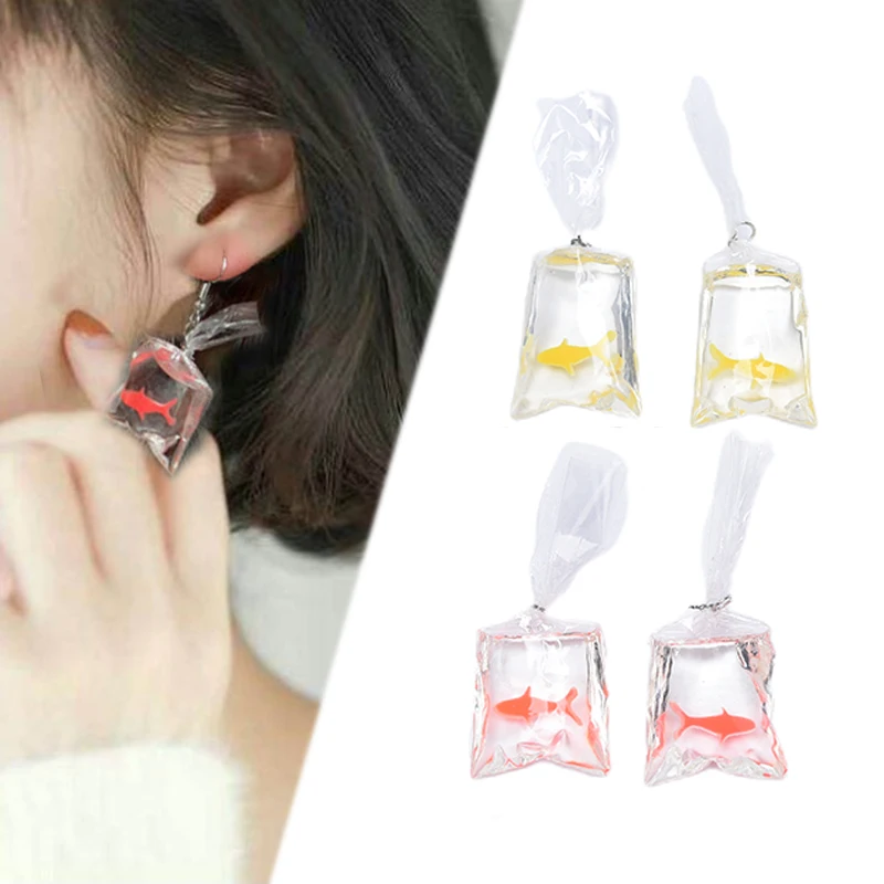 1 пара милых мультяшных каучуковых золотых рыбок, имитация мешка для воды, формы, подвески, серьги, Забавный милый мешочек для воды, ювелирные изделия ручной работы