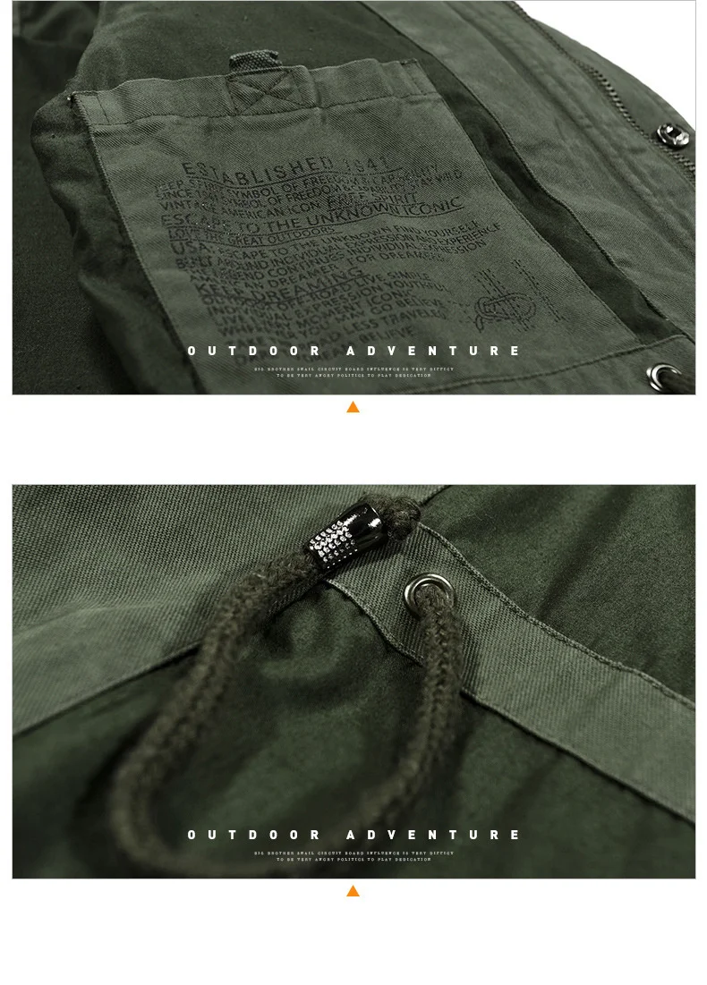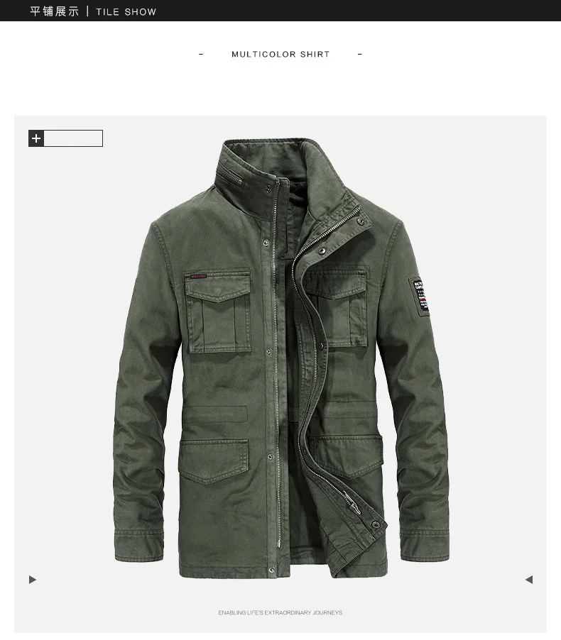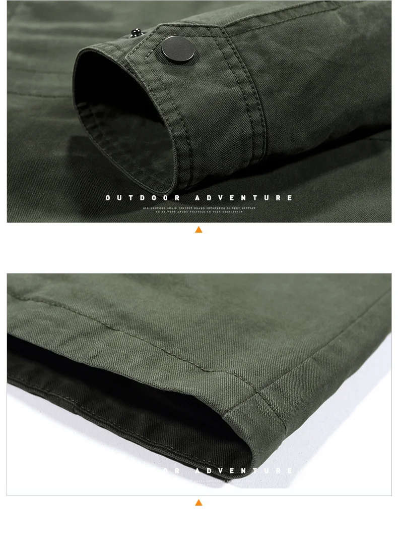 Мужская хлопковая куртка в стиле милитари, с несколькими карманами, средней длины