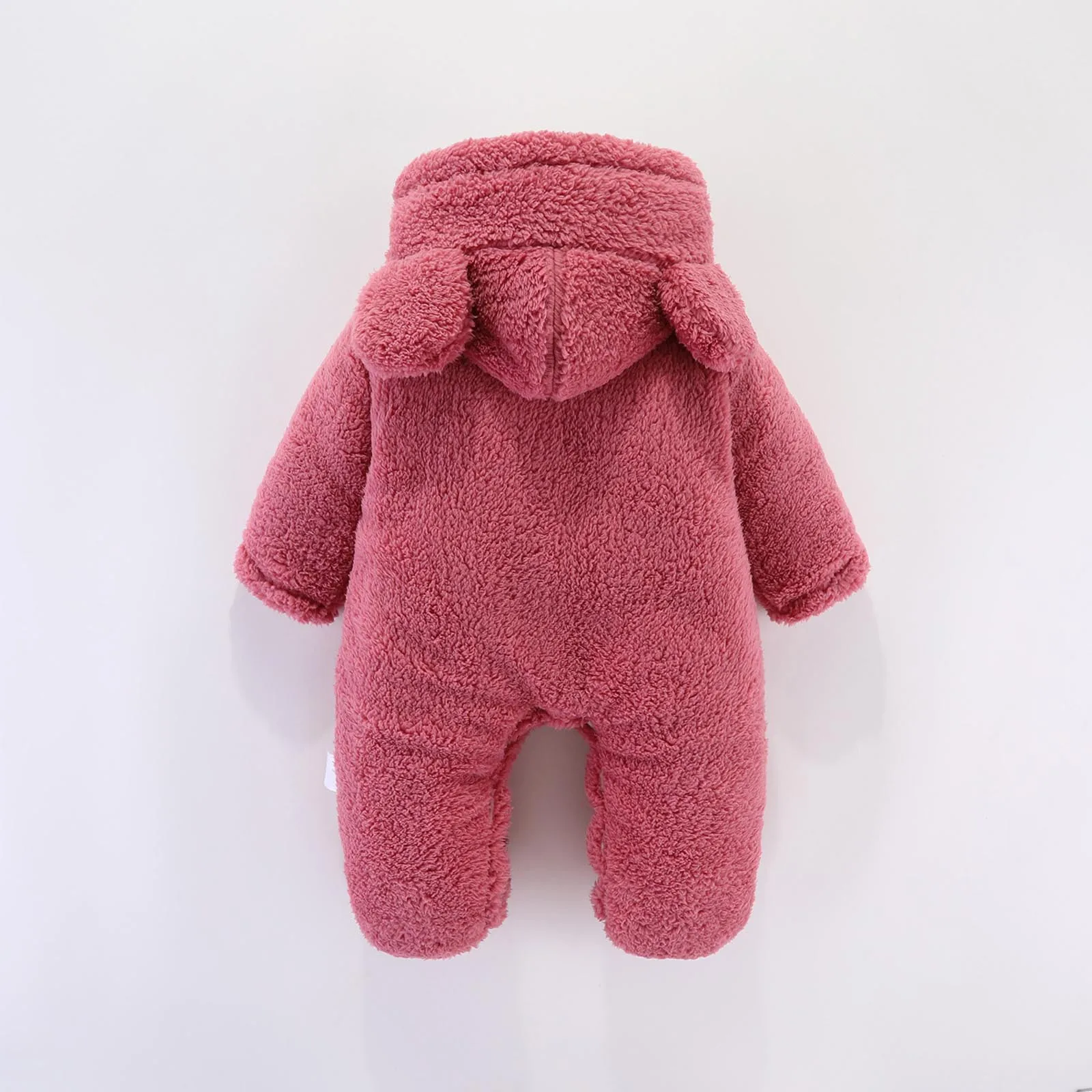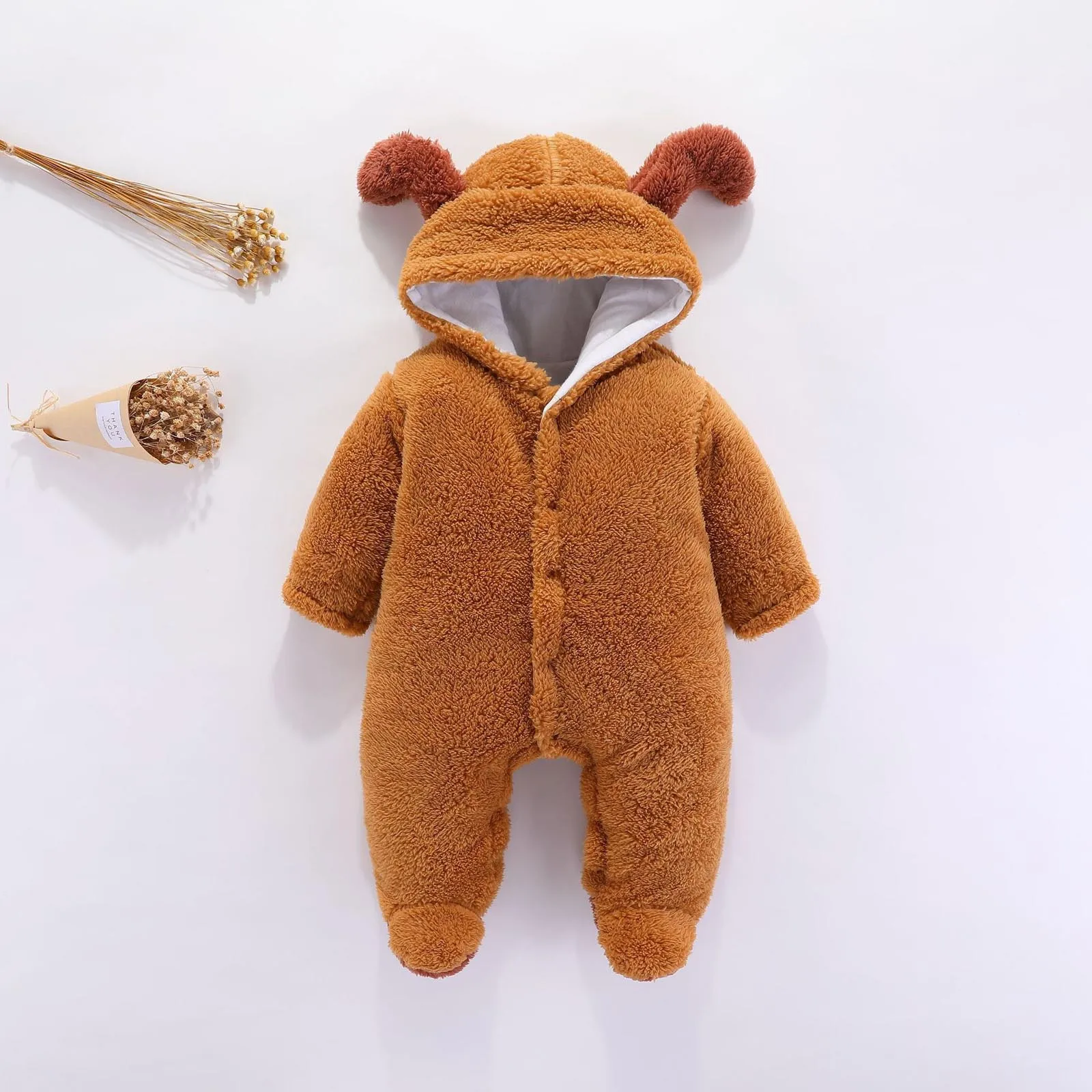 Комбинезон для мальчиков и девочек, зимний теплый комбинезон с капюшоном и ушками медведя, для новорожденных