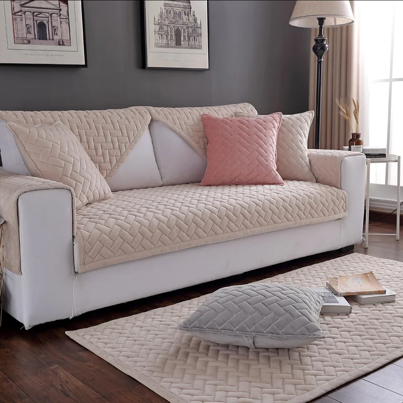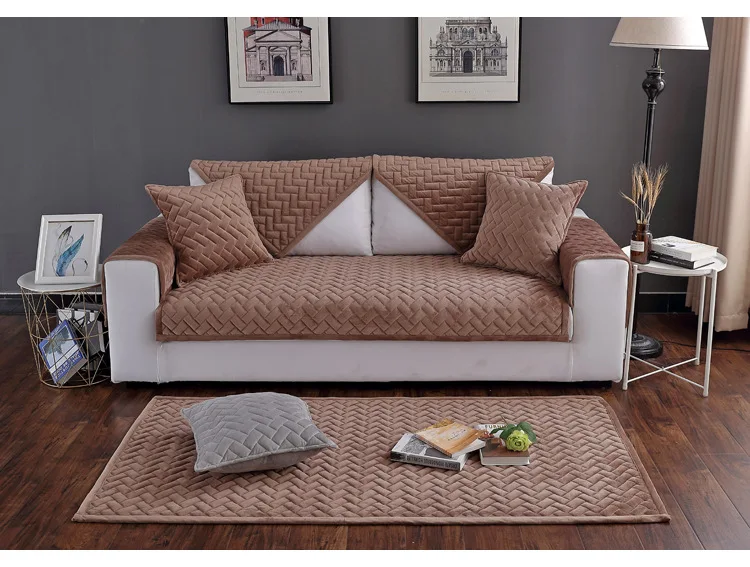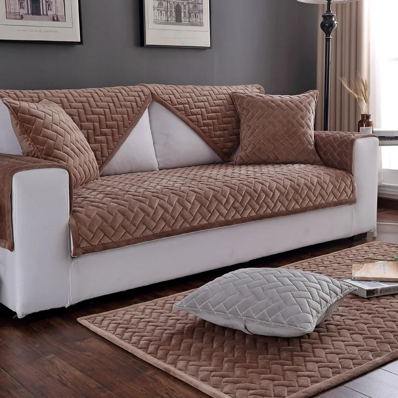 Мягкие плюшевые стеганые Чехлы для дивана, современный утолщенный нескользящий чехол для дивана, Качественный флисовый Бархатный Чехол для дивана