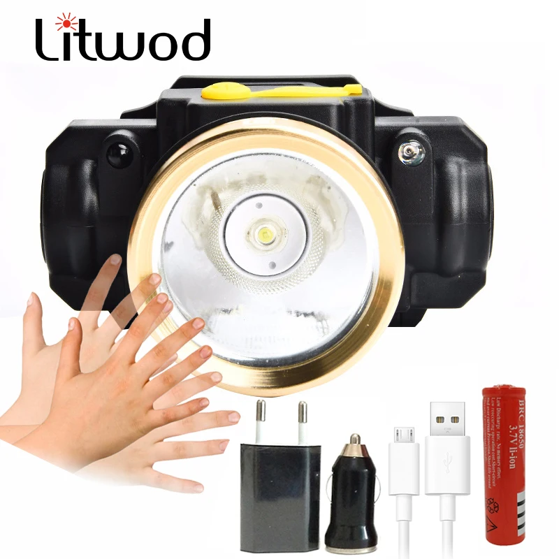 Фонарь налобный светодиодный с датчиком и зарядкой от Usb, 18650