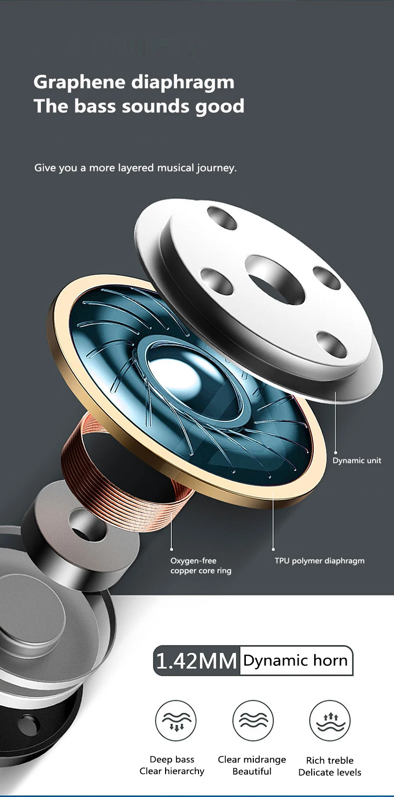 -Оснащен приводом 1,42 мм, чтобы обеспечить потрясающий звук для приятного прослушивания.
