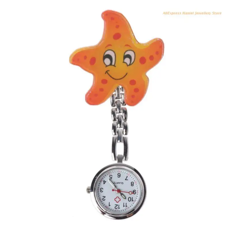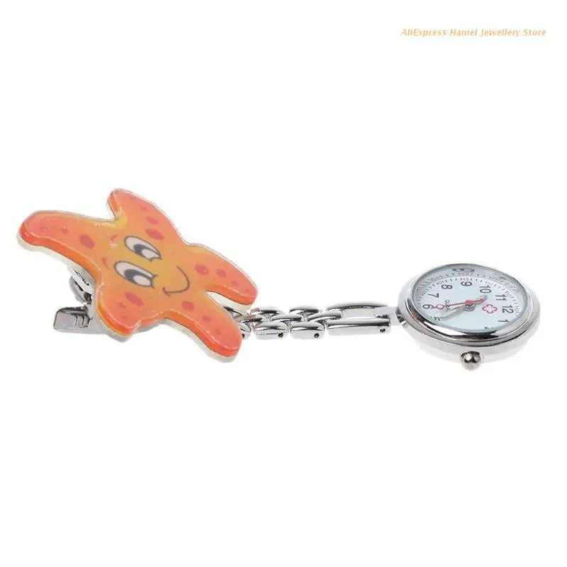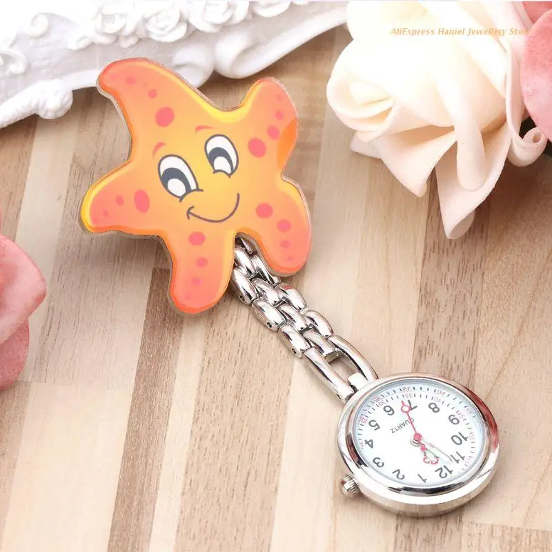 Часы медсестры больничные часы с морской звездой винтажные нагрудные карманные часы акриловые Мультяшные милые Креативные подвесные клипсы Прямая поставка