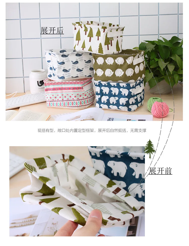 Тканевая настольная корзина для хранения льняная игрушка коробка для хранения книг разное