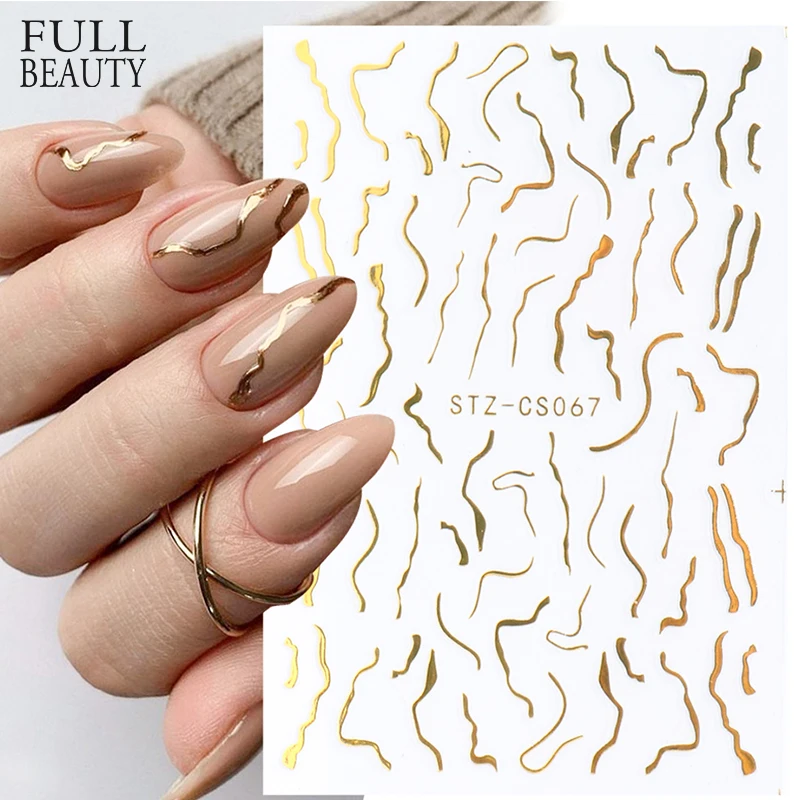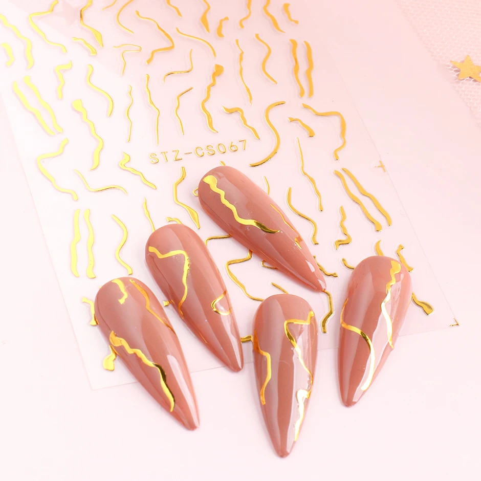 3D золотая полоса мраморная линия украшения ногтей наклейки зима Сделай Сам блестящий дизайн гель лак Маникюр слайдер наклейки CHSTZ-CS067
