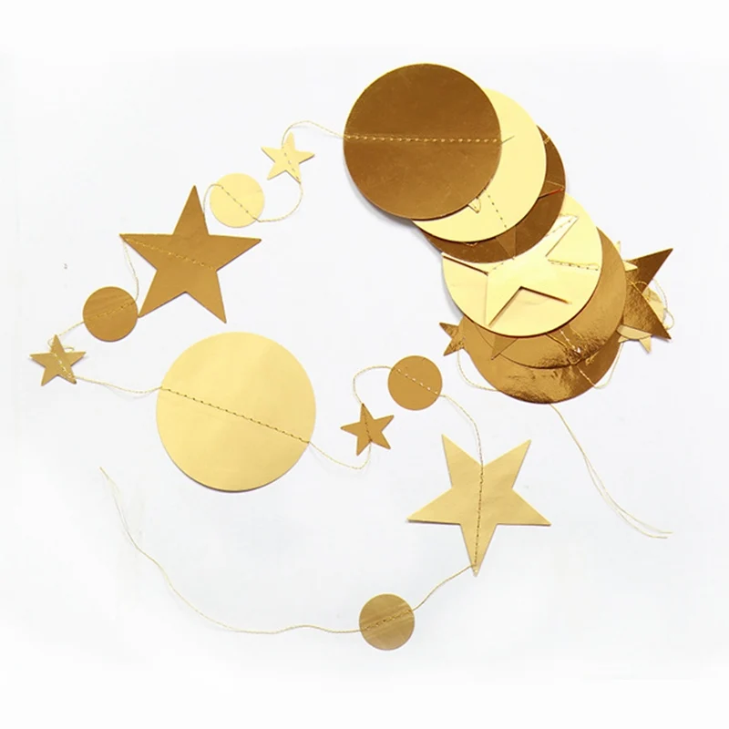 Свадебное украшение, 4 м, золотые, серебряные звезды, круглые бумаж...
