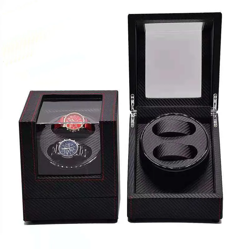 Автоматическая коробка для намотки часов, роскошный Органайзер с двойным вращением двигателя, из углеродного волокна, для хранения