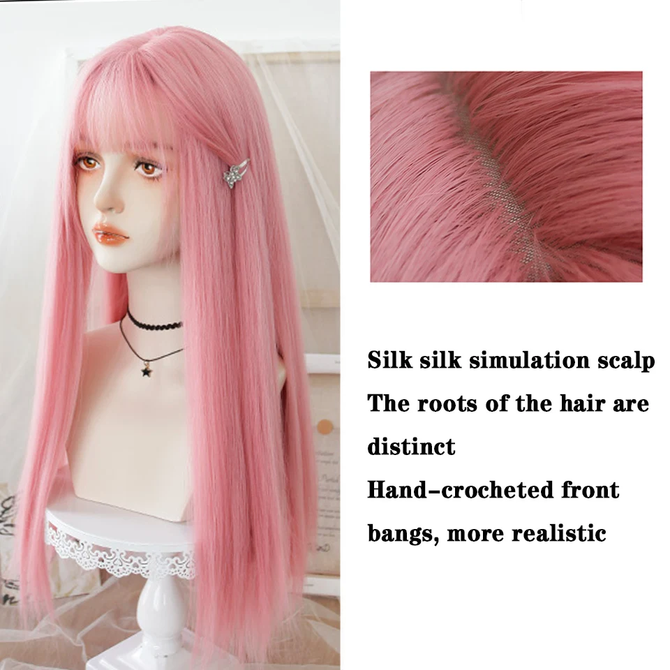 Парик HOUYAN розовые длинные прямые волосы с челкой женский натурал...
