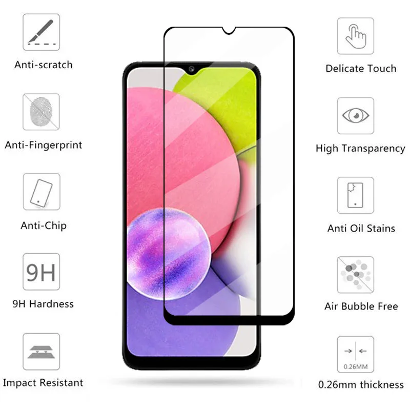 Закаленное стекло для Samsung Galaxy A03S, Защитная пленка для экра...