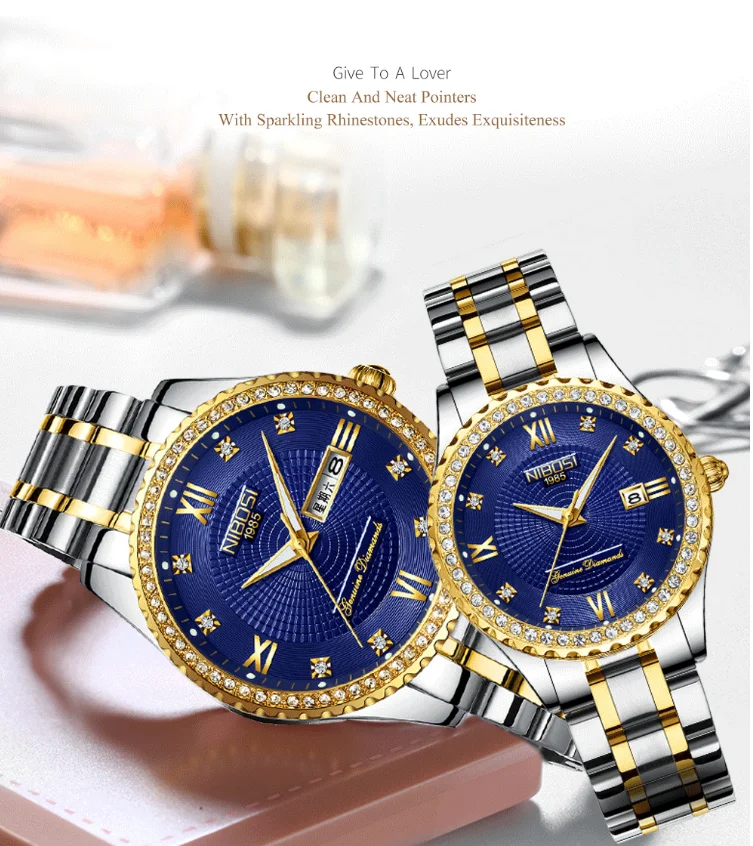 NIBOSI, 2 шт.компл., модные парные часы, лучший бренд, роскошные женские мужские часы, кварцевые наручные часы, мужские часы, подарки для влюбленных