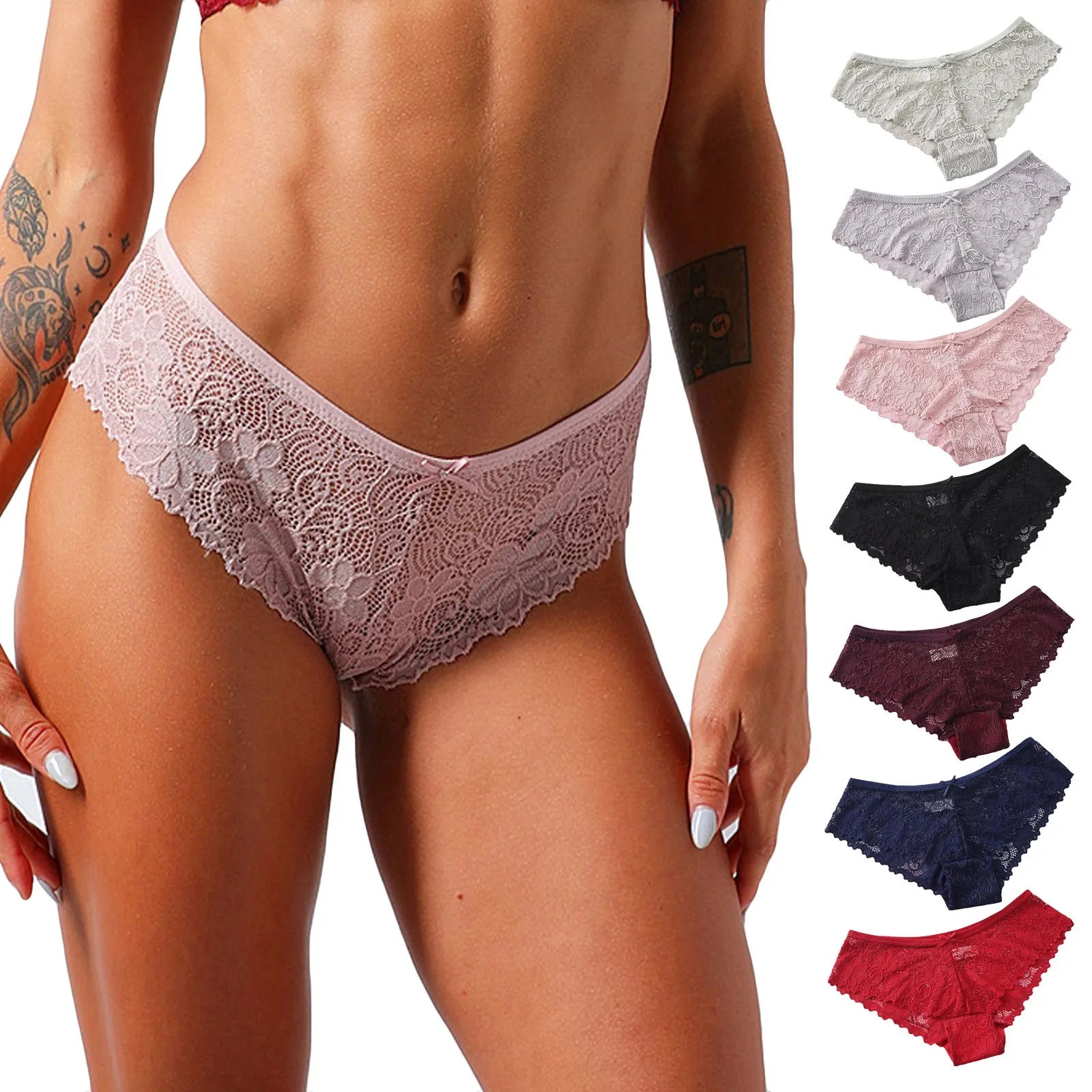 Сексуальные кружевные трусики с низкой талией, бесшовные трусики, ж...