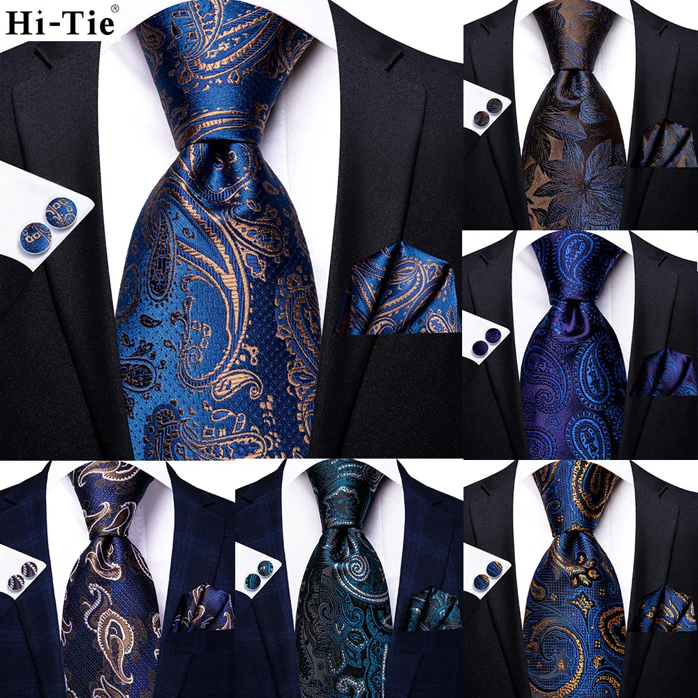 Галстук Hi-Tie темно-синий однотонный Шелковый Свадебный Галстук Пейсли для мужчин носовой платок запонки мужской s набор галстуков деловая Вечеринка новый дизайн дропшиппинг