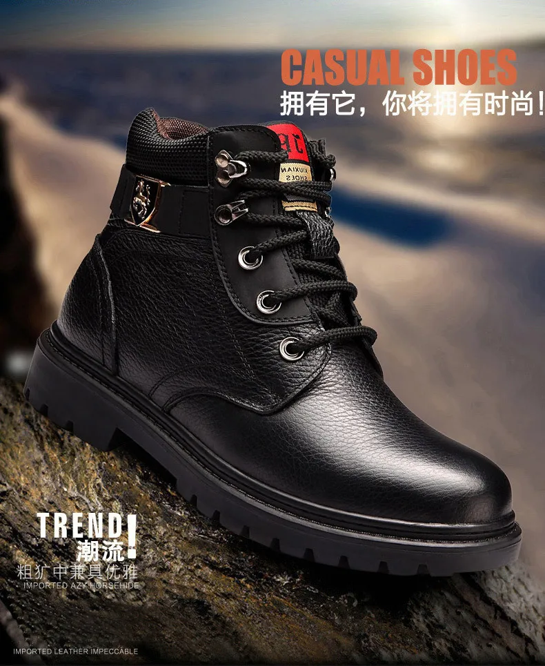 Ботинки мужские зимние из натуральной кожи, теплые, водонепроницаем...