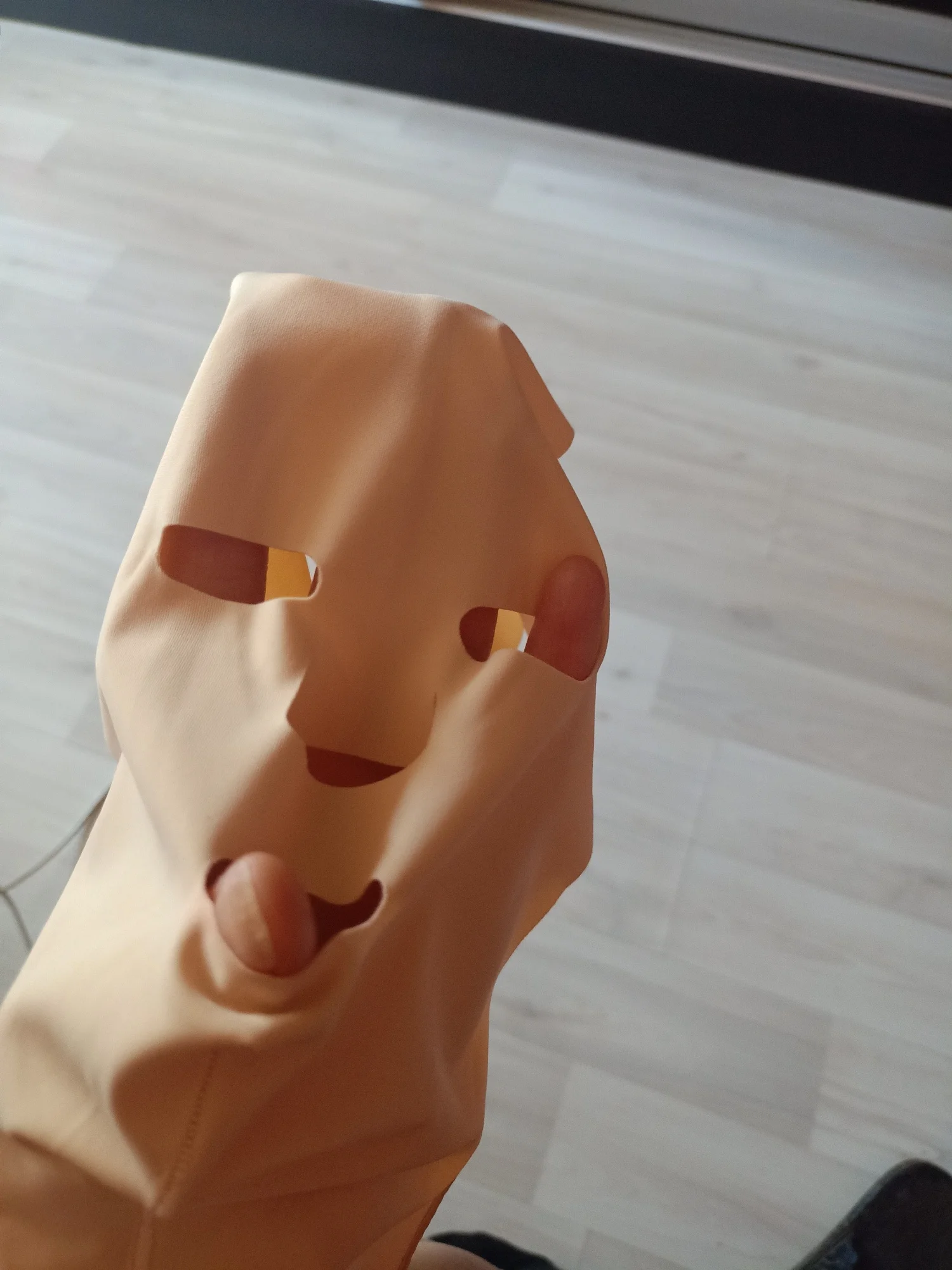 Понравилось, что крем не стирается об наволочку, кожа мягкая, гладкая. Носогубные, лоб и контур сглаживаются. Волосы убраны, удобно. Маска не мешает спать, если шею не затягивать. 2 раза использовала. Решила зашить щели для глаз и сделать надрезы выше, а то нижнее веко свободное, не покрыто и на утро прям мешки под глазами. Обязательно одевать изнаночной стороной, а то будет рубец от шва